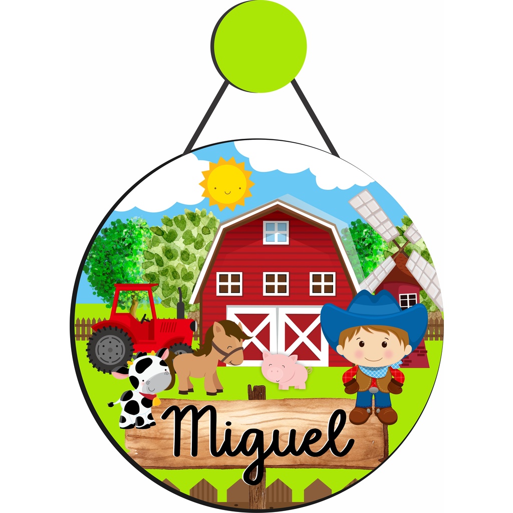 Enfeite Porta Maternidade Fazendinha, fazenda, rural, Menino, Animais - Nome personalizado.