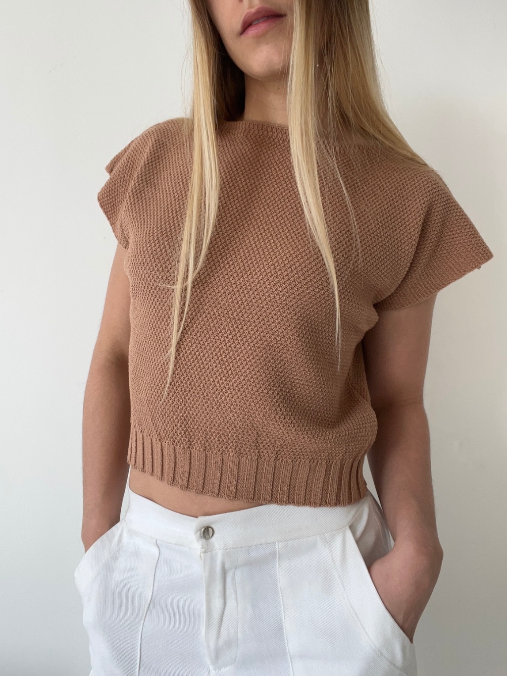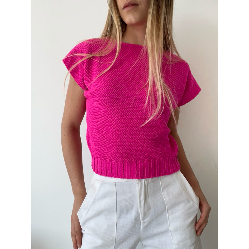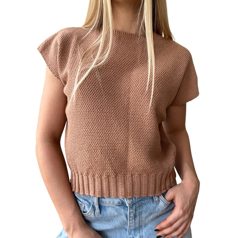 Camiseta Tricot Modal Moda Feminina Tricô Verão Cropped Gola Canoa