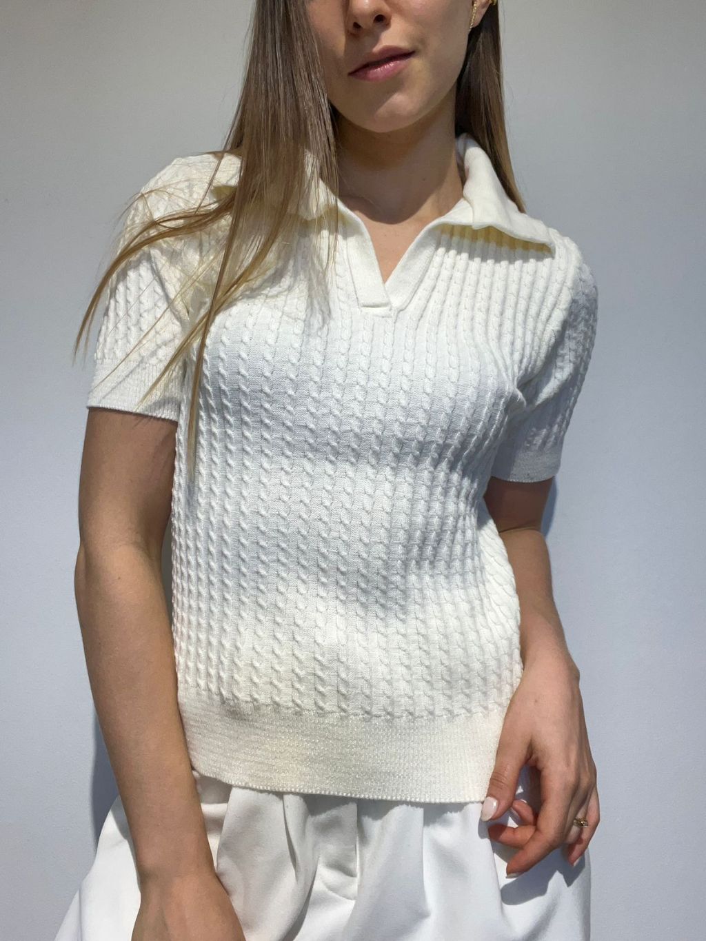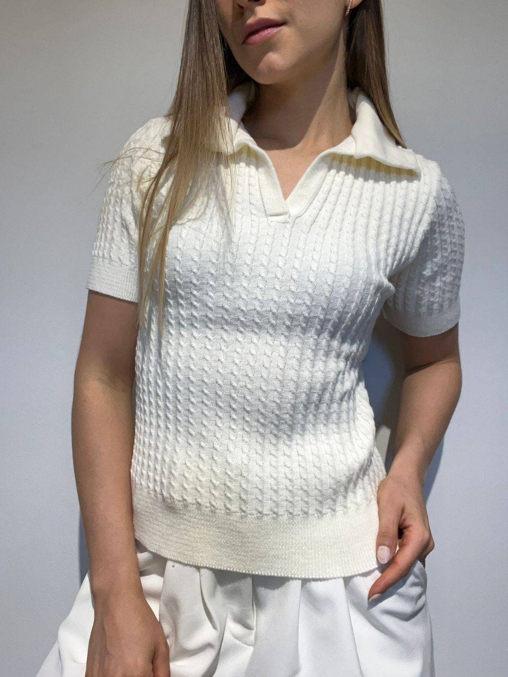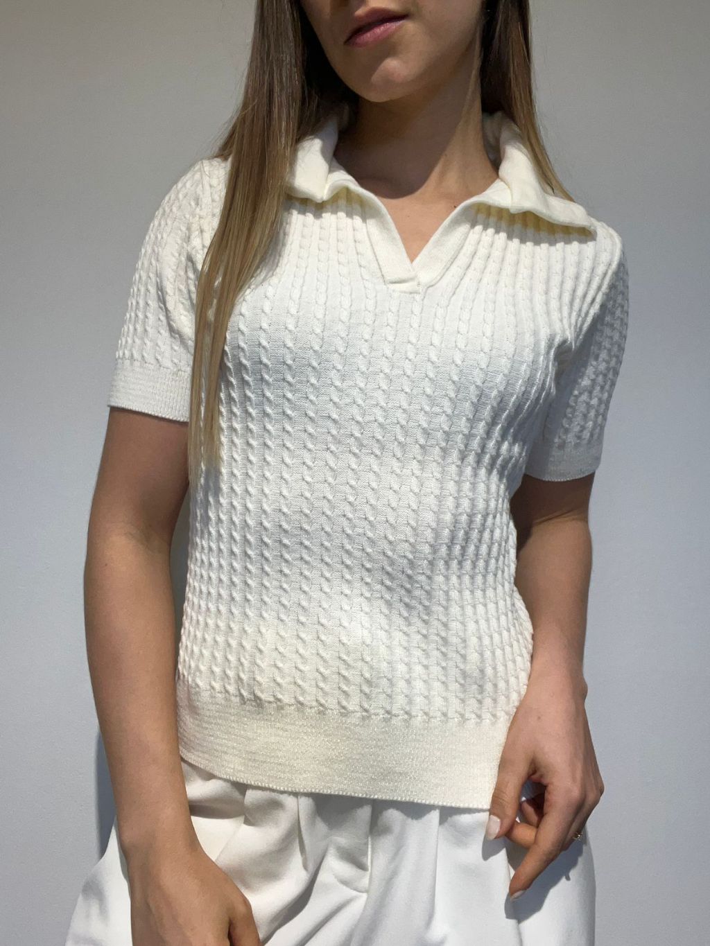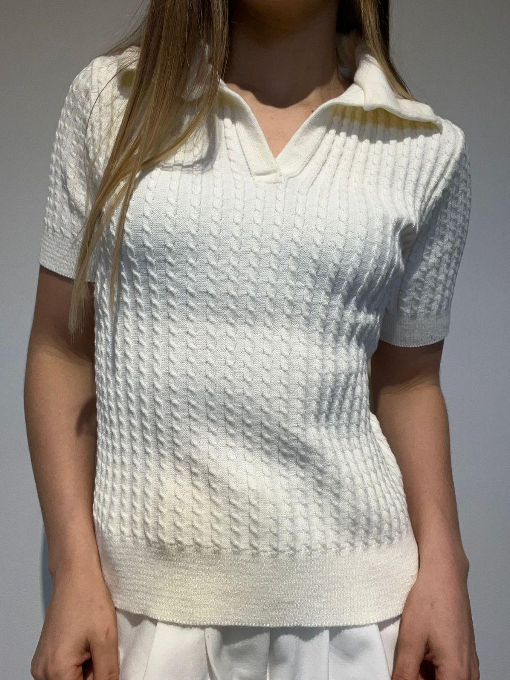 Camiseta Polo Trançada Tricô Moda Feminina Verão Tricot Modal
