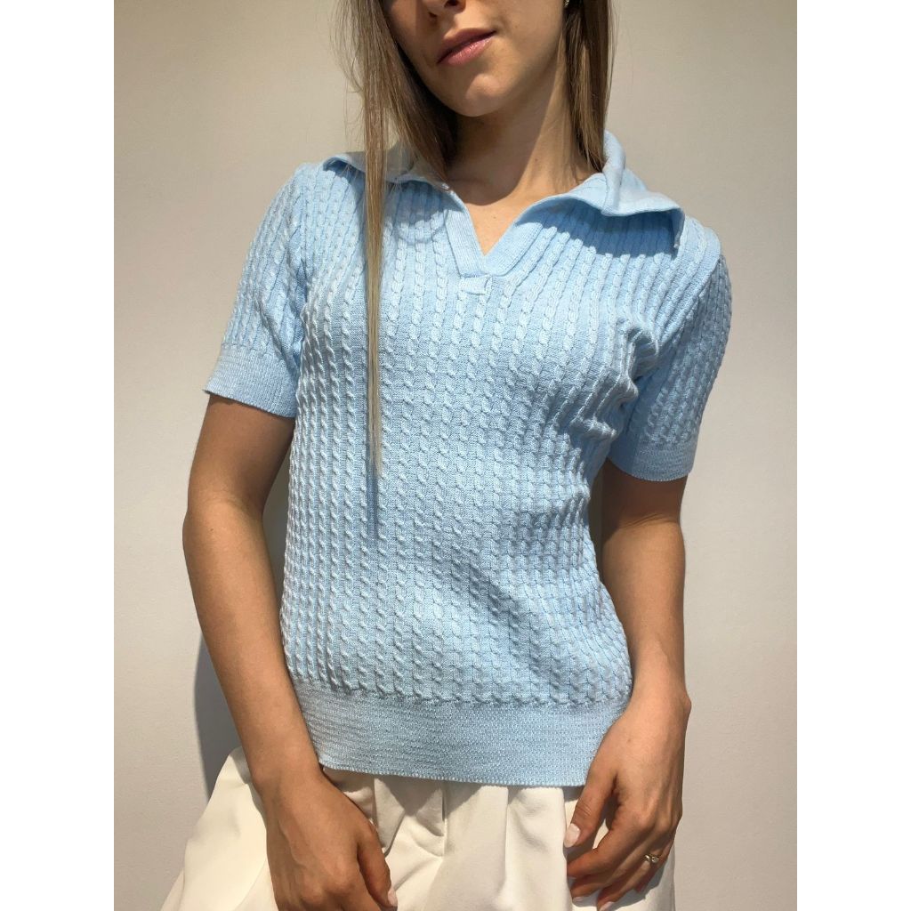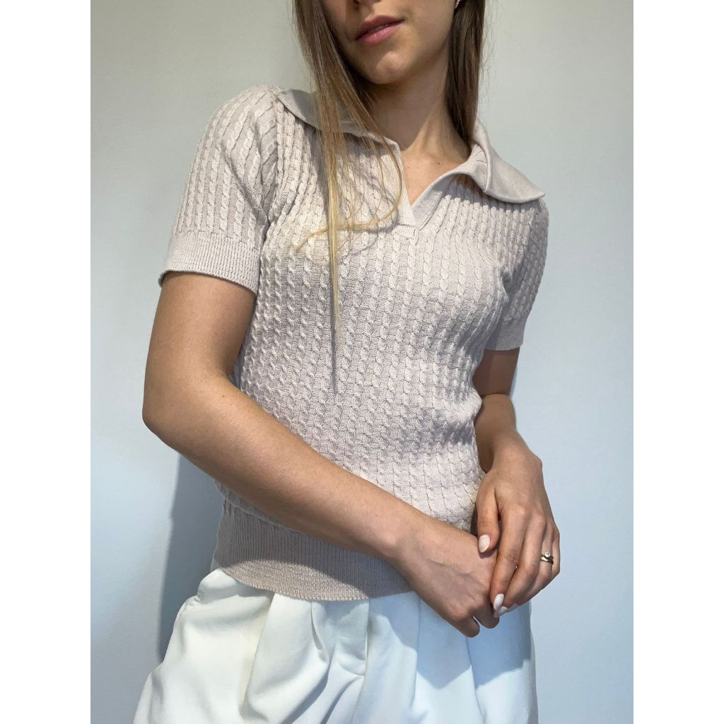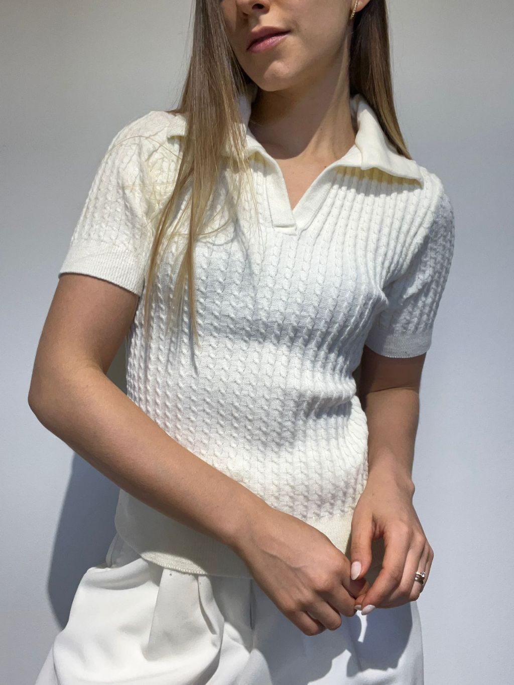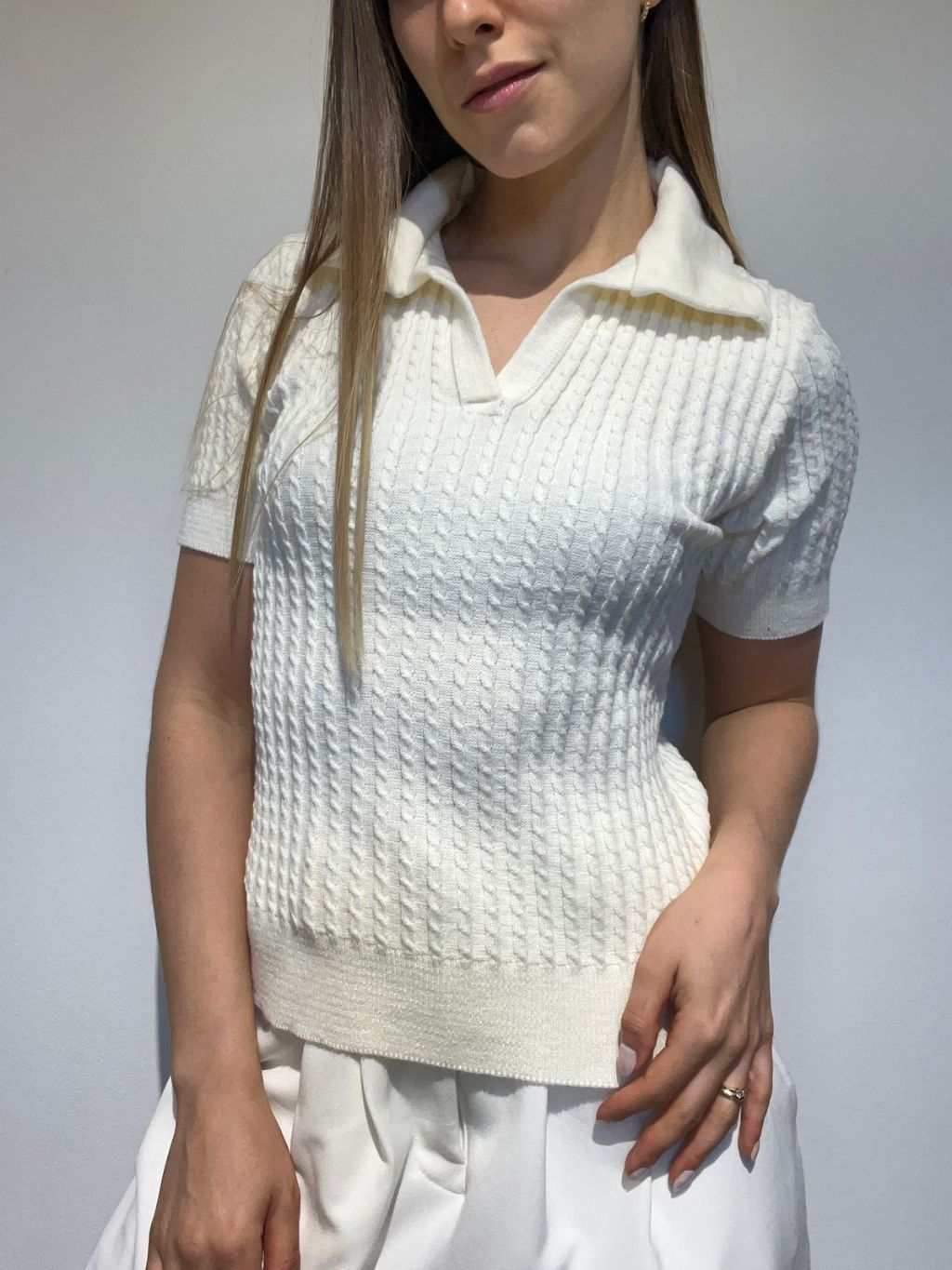 Camiseta Polo Trançada Tricô Moda Feminina Verão Tricot Modal