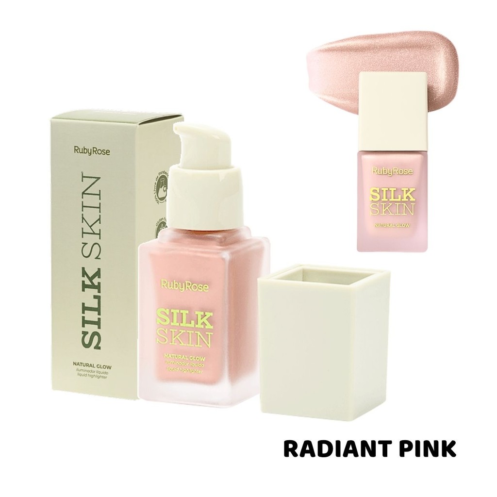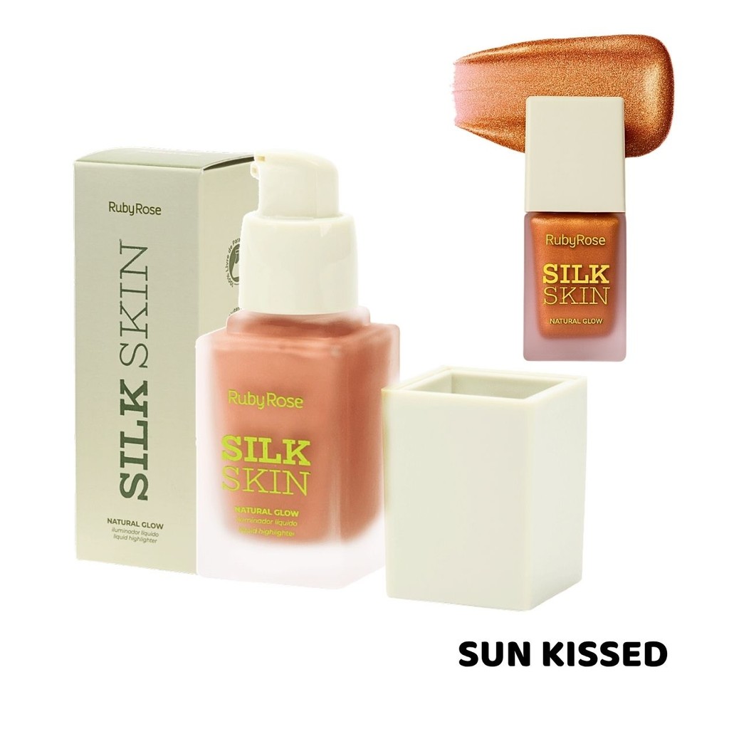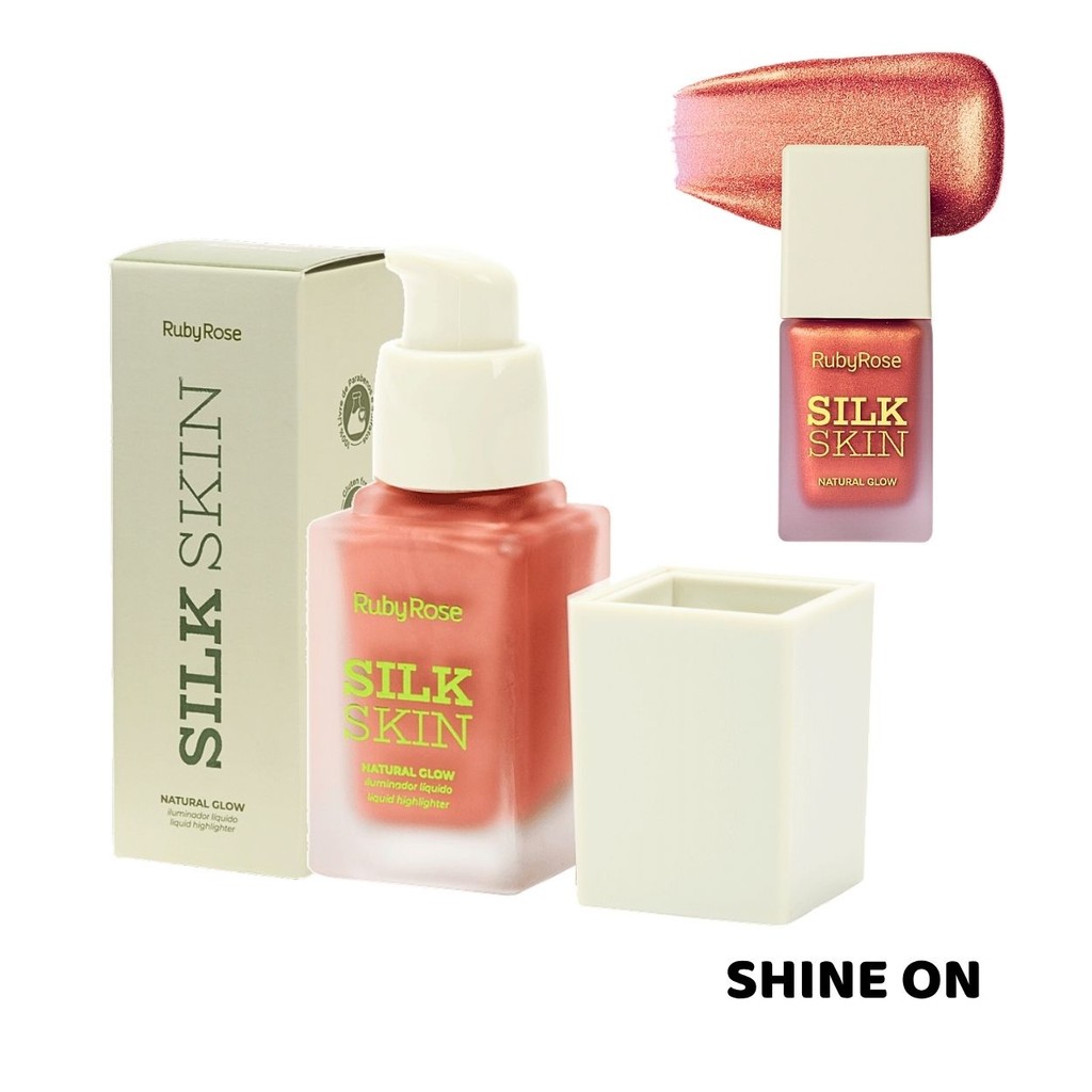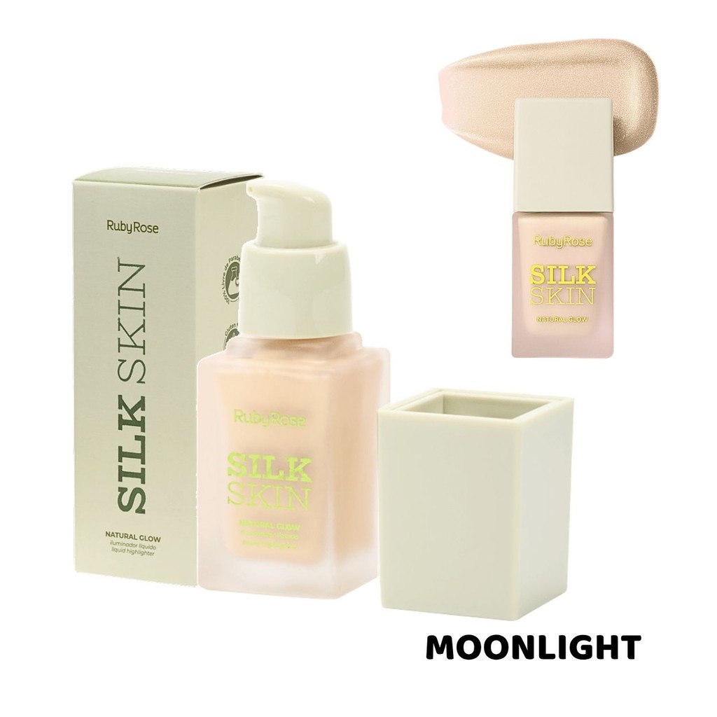Iluminador Líquido Ruby Rose Silk Skin Natural Glow Facial e Corporal Brilho Intenso e Textura Leve