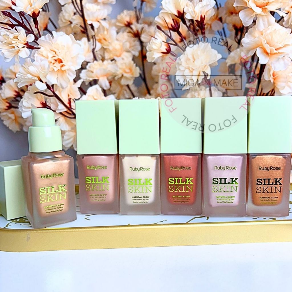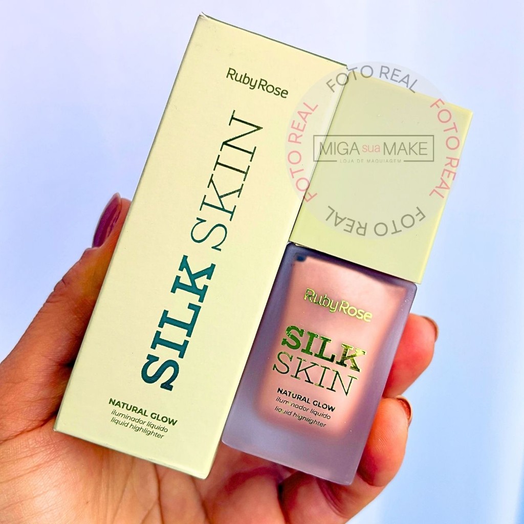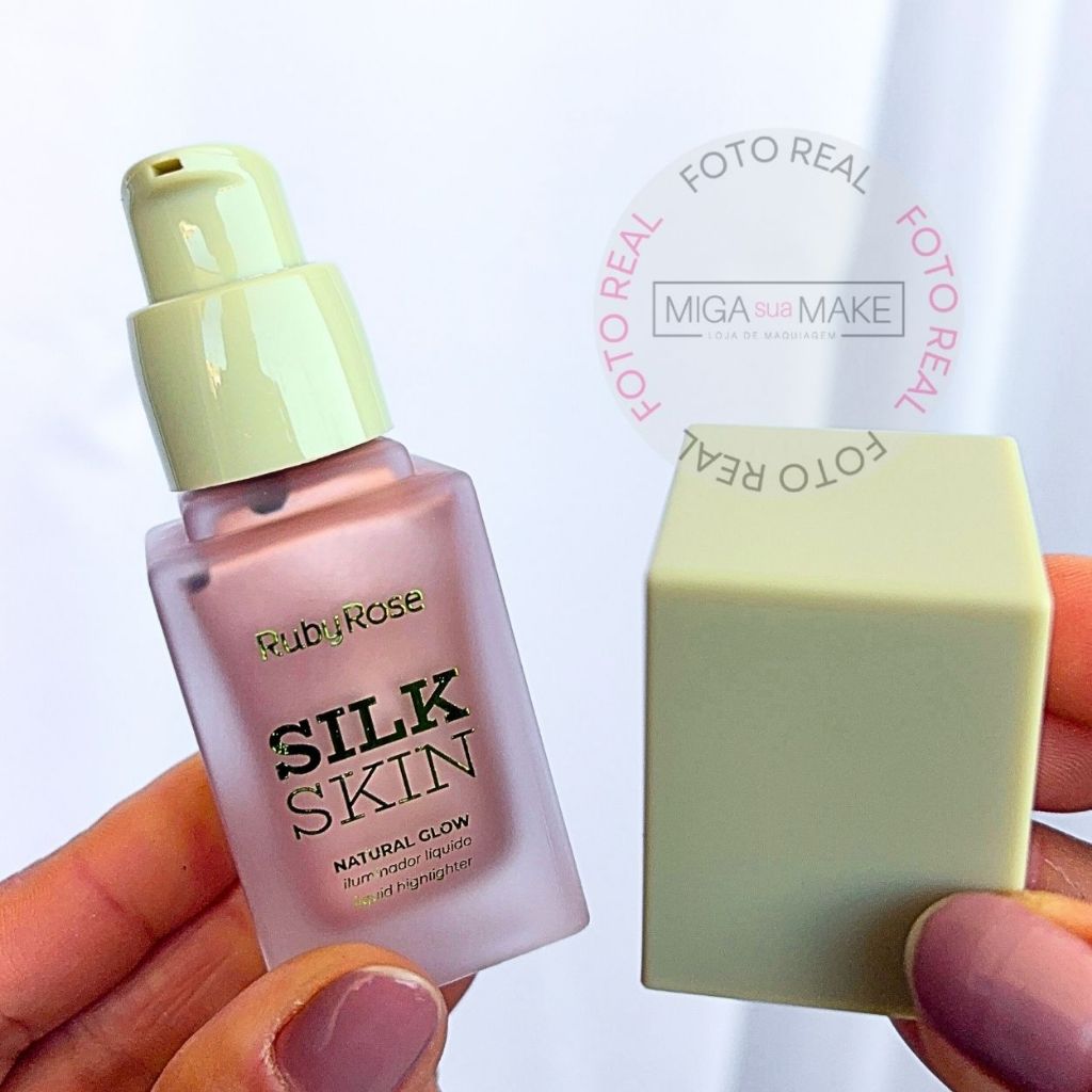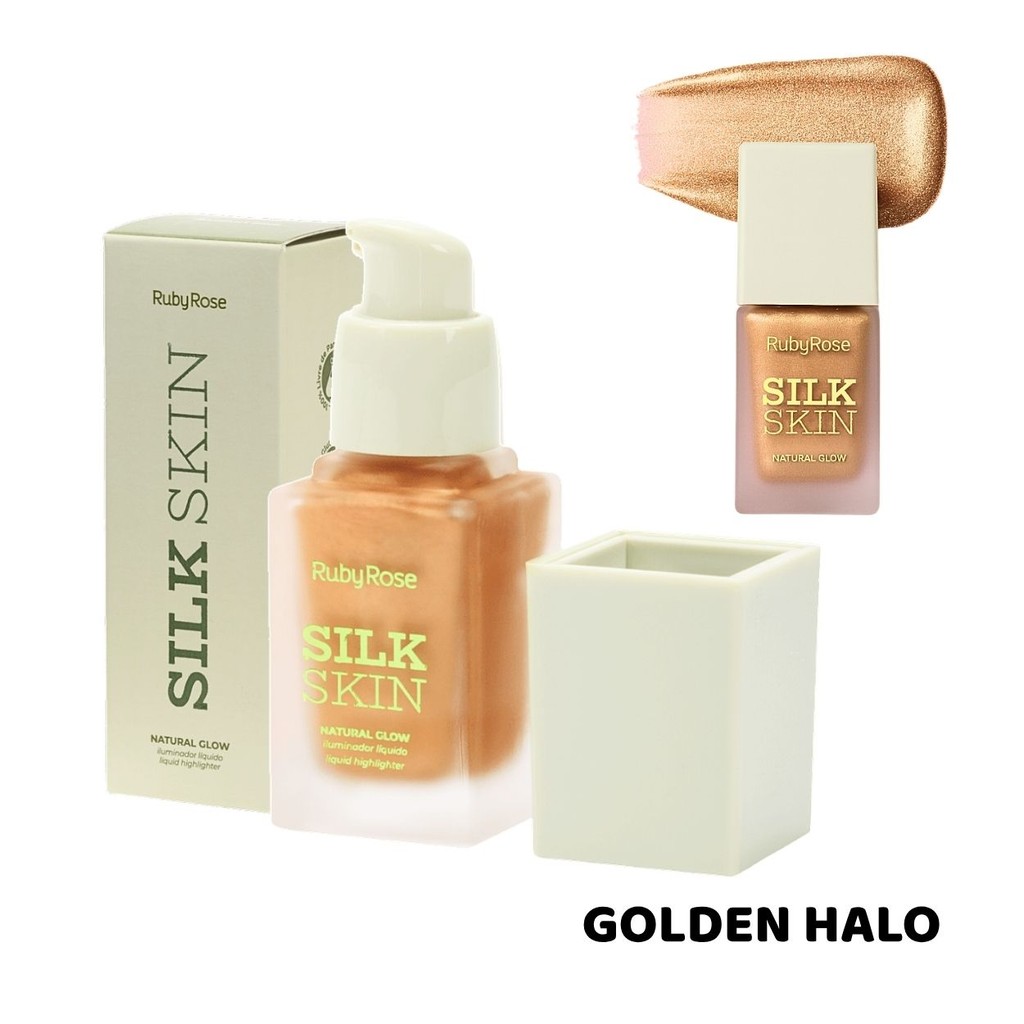 Iluminador Líquido Ruby Rose Silk Skin Natural Glow Facial e Corporal Brilho Intenso e Textura Leve