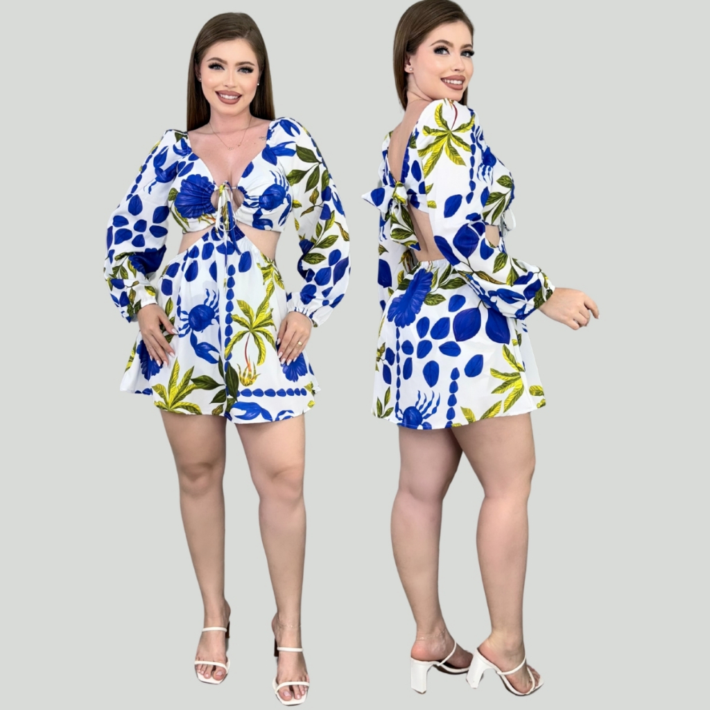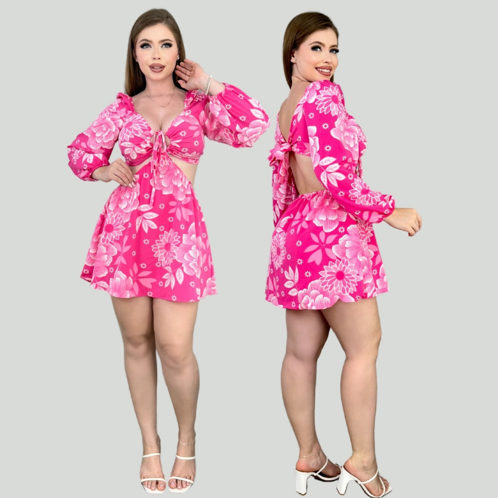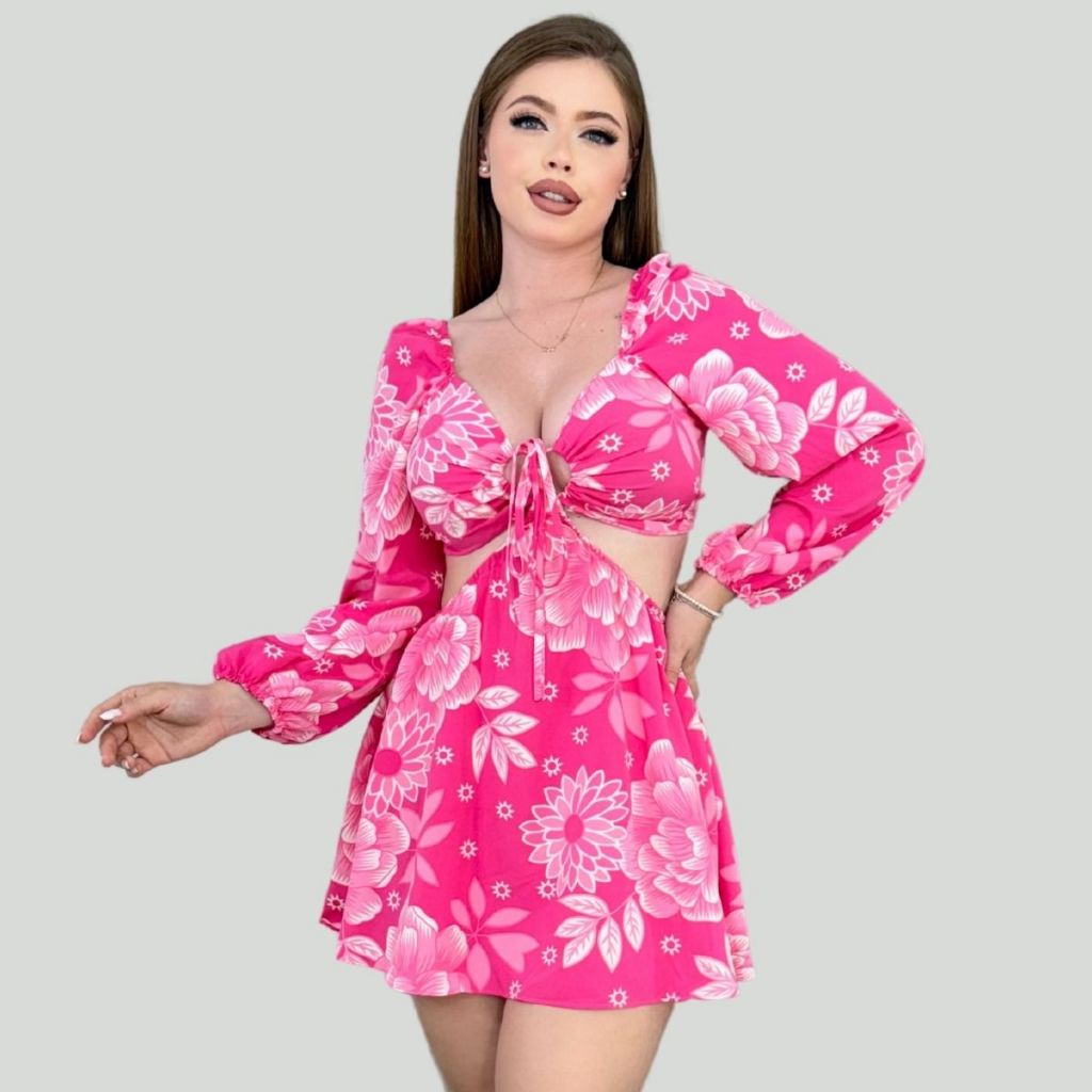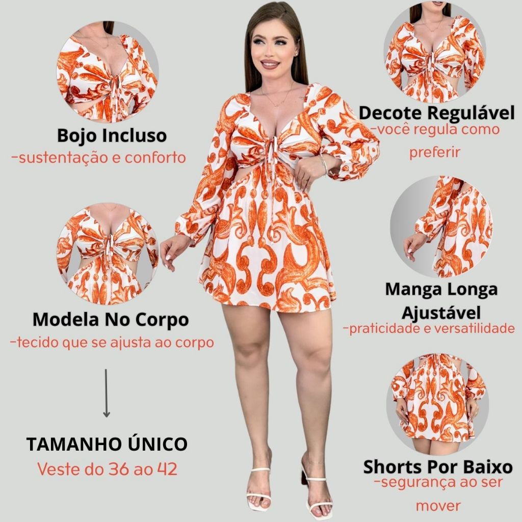 Macaquinho Feminino Sedinha Poliéster Inspiração Vestido Estampa Farm Short Saia Barbie Lançamento