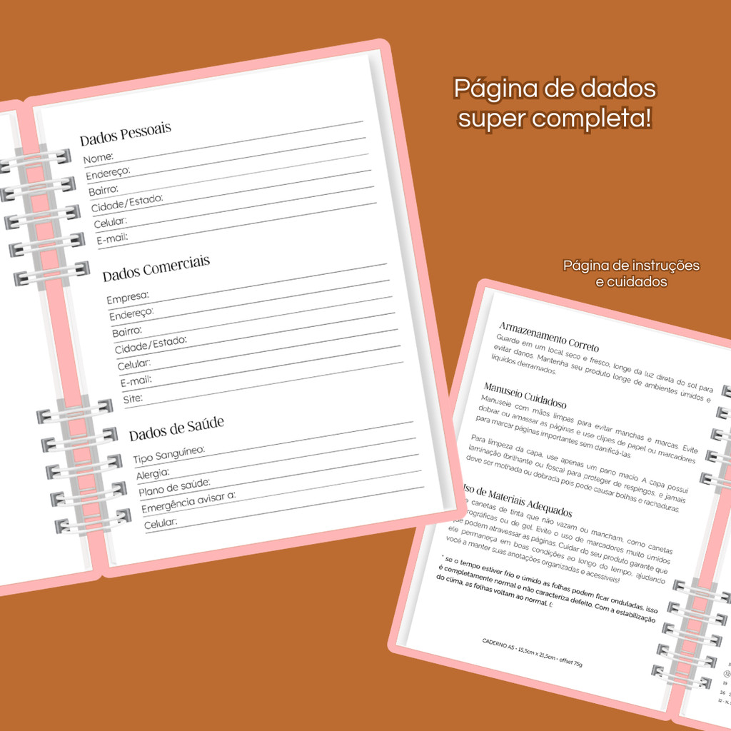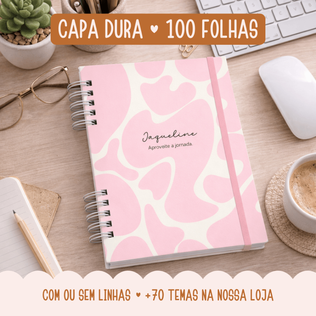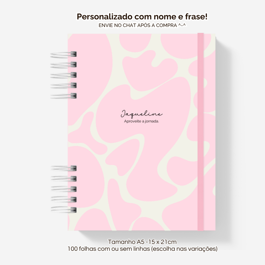 Caderno de Anotações A5 Personalizado Nome na Capa Abstrato Minimalista Capa Dura Feminino Moderno Estampado Delicado