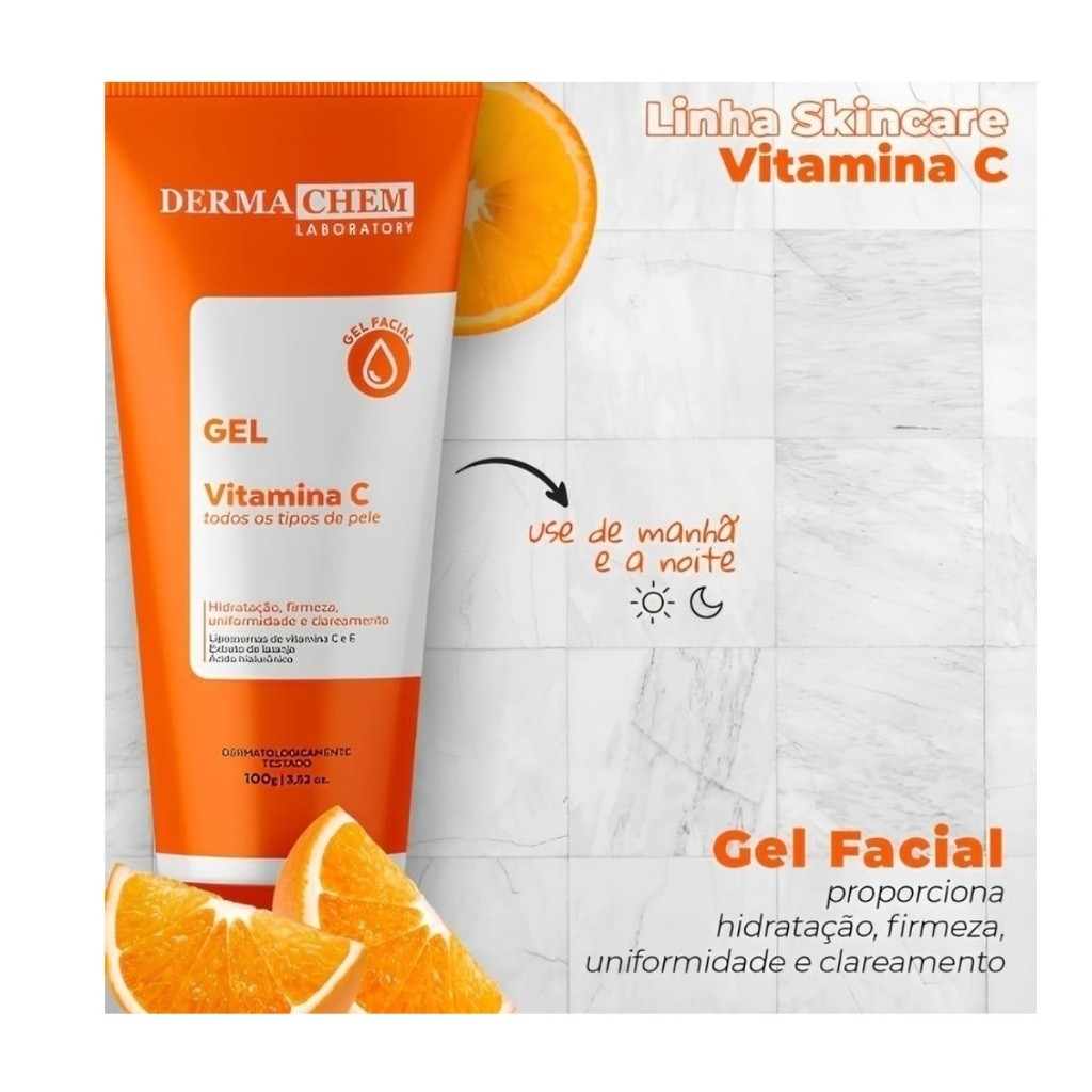 Dermachem Kit Serum Clareador Gel Anti-Idade Vitamina C Hidrata Clareamento Firmeza Uniformidade