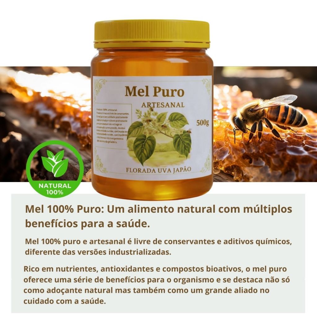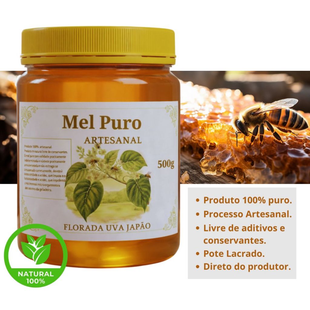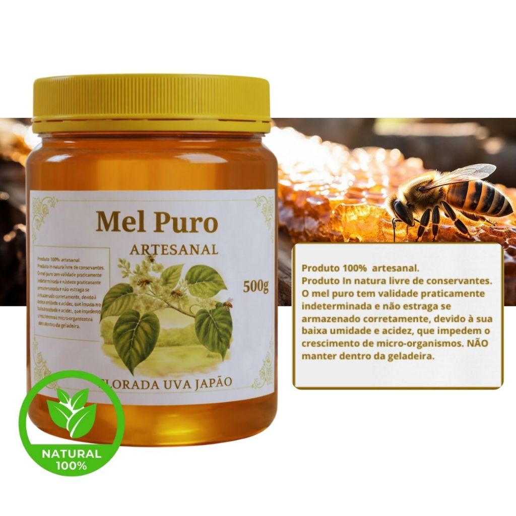 MEL PURO 100% ORGANICO FLORADA SILVESTRE UVA JAPÃO MEL ARTESANAL