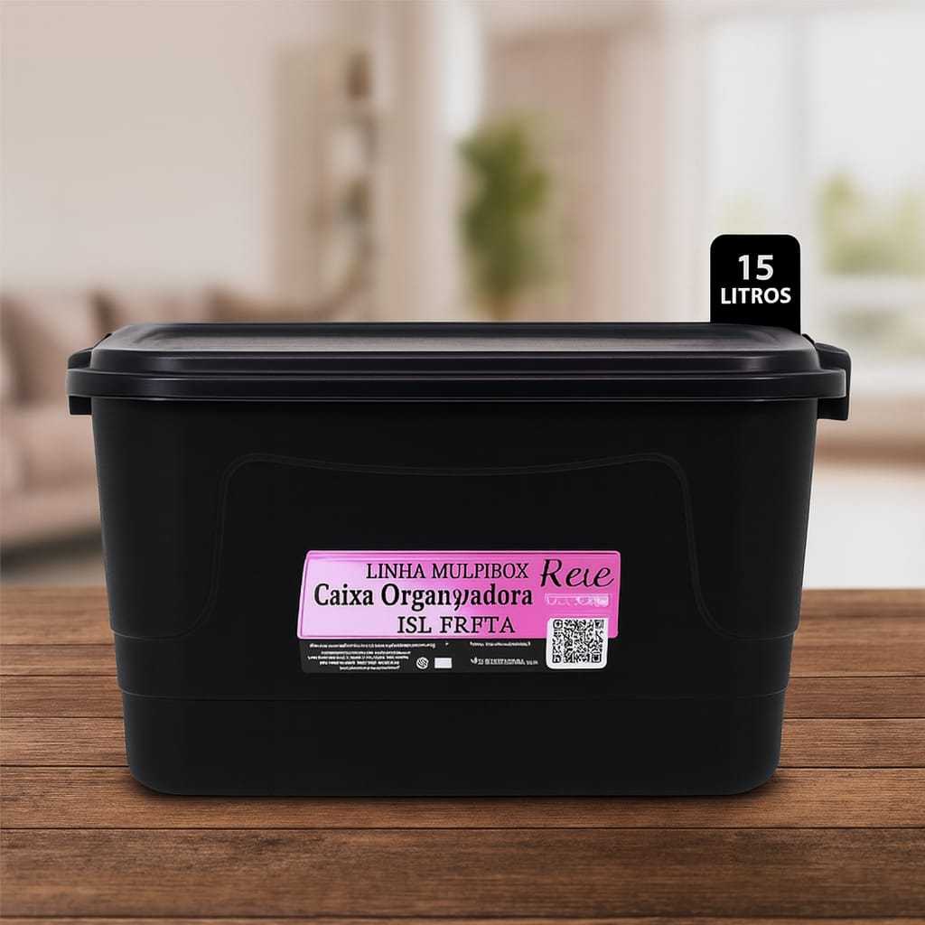 Kit 3 Caixas Plasticas 15 Litros Organizadoras Roupas Brinquedos Produtos Diversos Com Tampa Cor Preta Multiuso Pratica