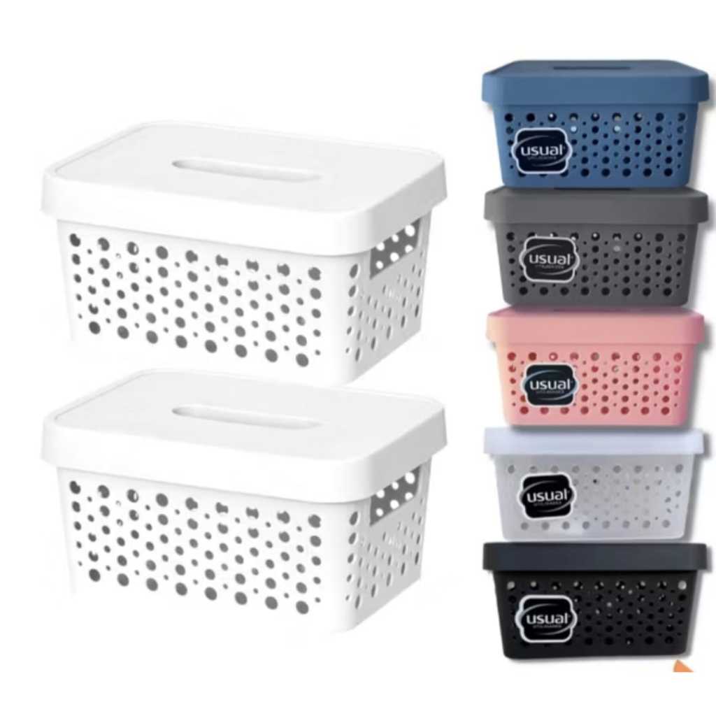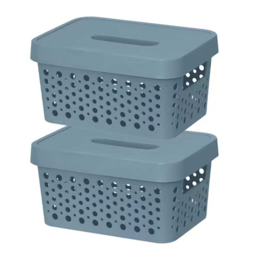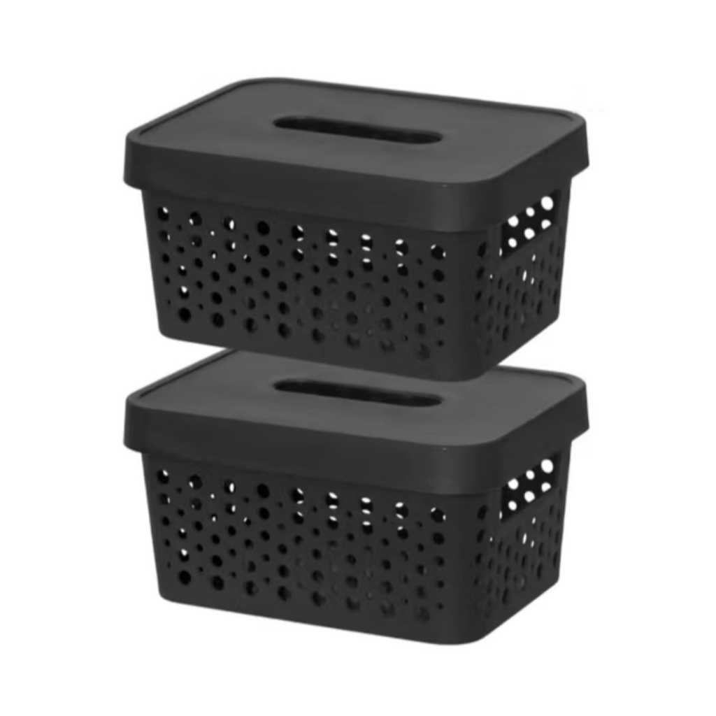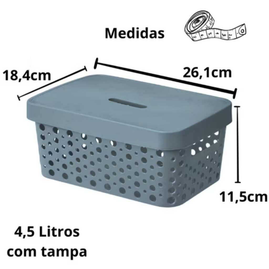 Kit 2 Caixas Plasticas Com Tampa 4,5 Lts Cesto Organizador Cozinha Banheiro Armarios Multiuso Duravel Moderna Com Alça