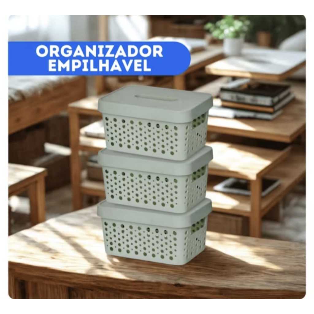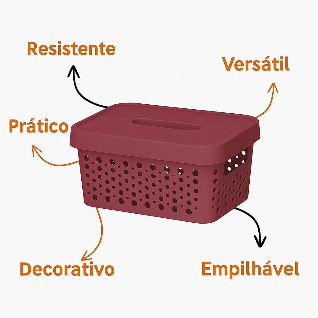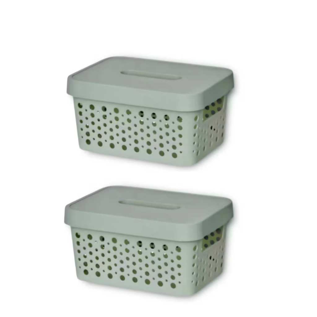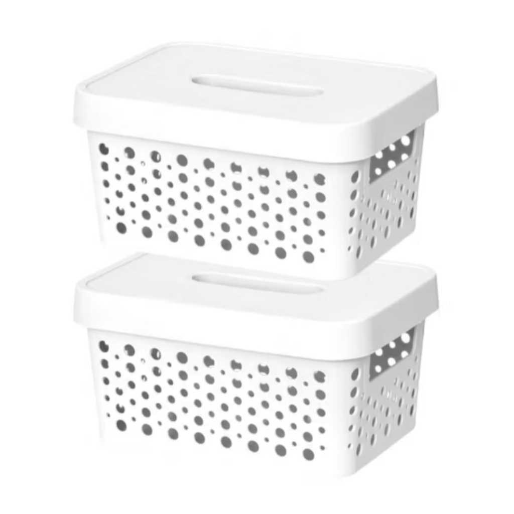 Kit 2 Caixas Plasticas Com Tampa 4,5 Lts Cesto Organizador Cozinha Banheiro Armarios Multiuso Duravel Moderna Com Alça