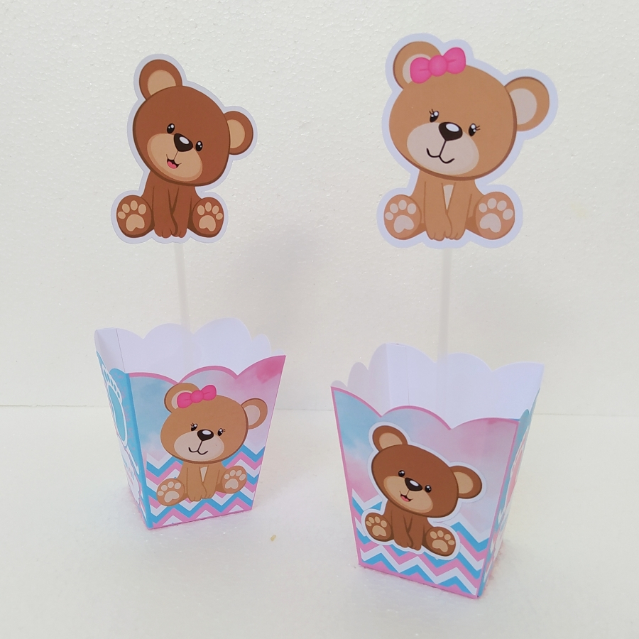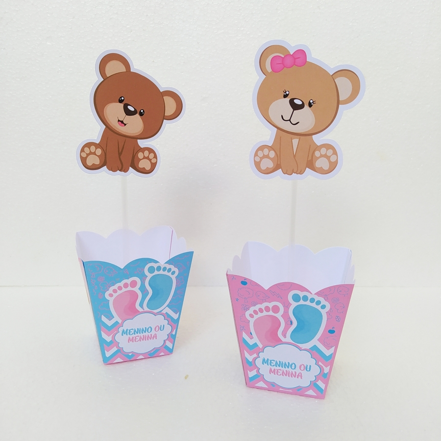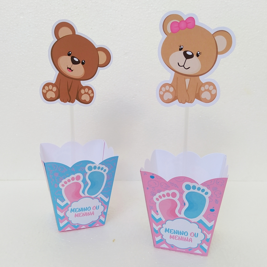 Centro de mesa, Cachepô, Arranjo de mesa personalizado Chá Revelação Rosa e Azul 10/15 unidades