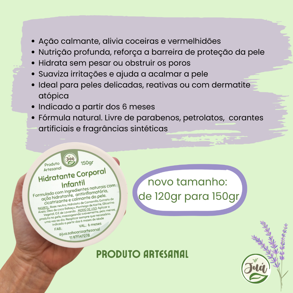 Hidratante Infantil Natural - Alergias Dermatite Eczema e pele sensível - com Camomila, Lavanda e Aveia