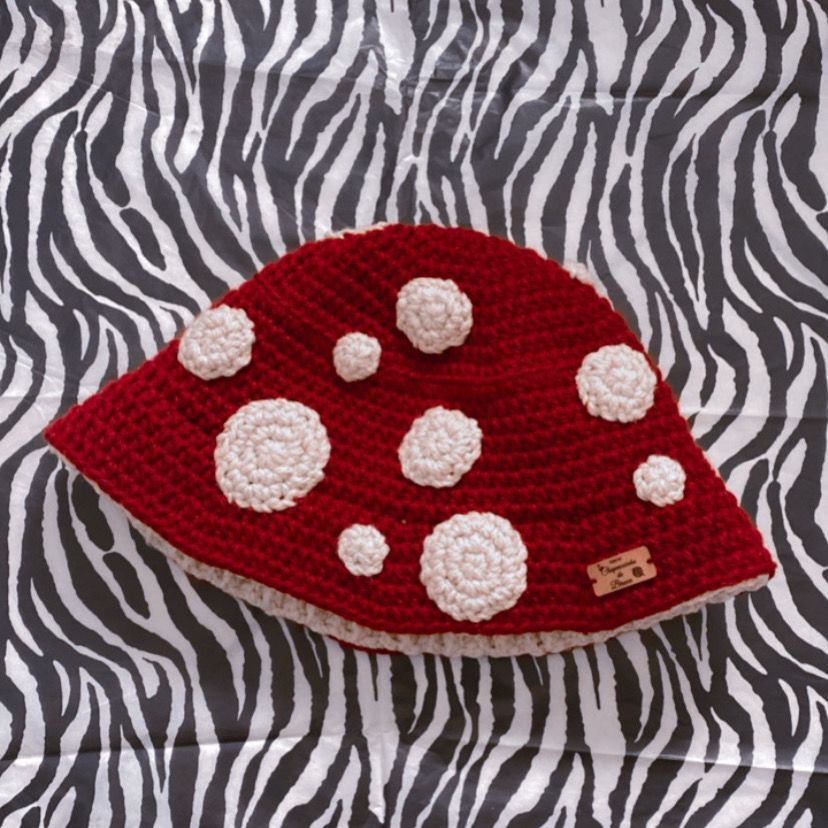 Chapéu Bucket Cogumelo Com/Sem Guelras Em Crochê Unissex