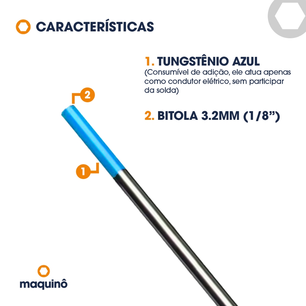 Kit 10 Pçs Eletrodo de Tungstênio 3.2mm Ponta Azul 2% Lantânio Para Soldar TIG Boxer