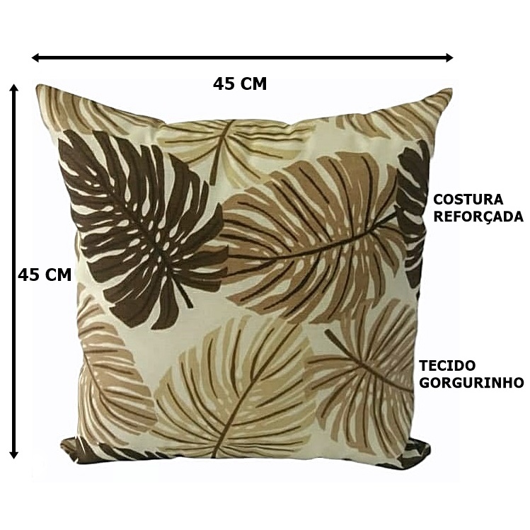 Kit 4 Capas Almofadas 45 X 45 Cm 2 Estampadas Costela De Adão Bege E 2 Lisas Marrom Com Zíper