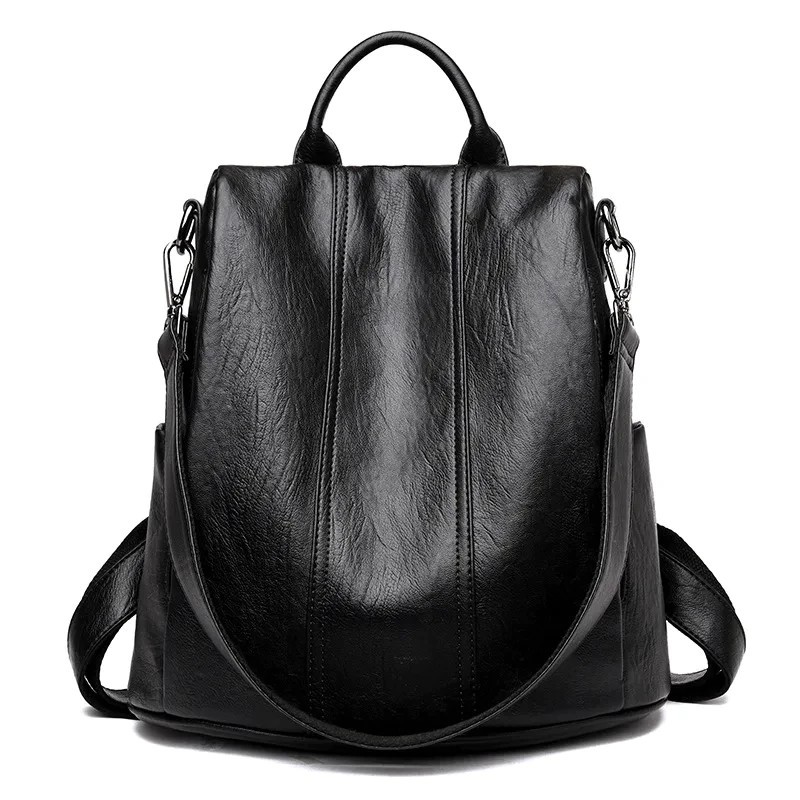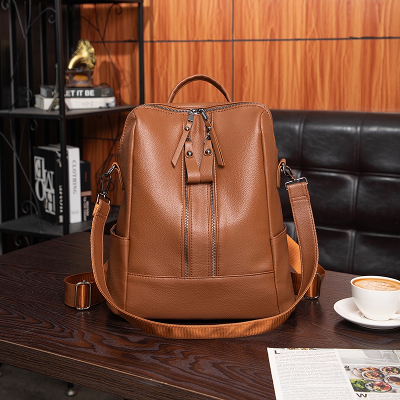 mochila feminina em couro PU alta qualidade média espaçosa com alça de ombro