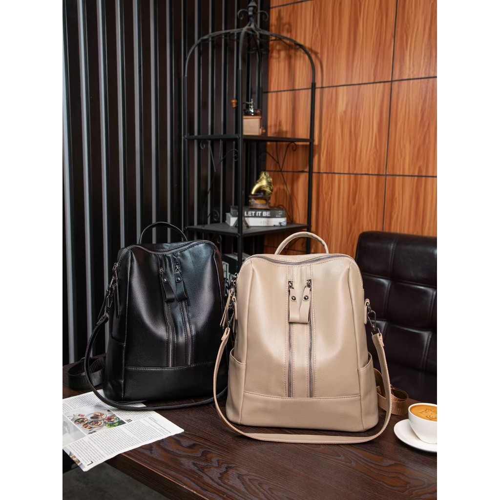 mochila feminina em couro PU alta qualidade média espaçosa com alça de ombro*608