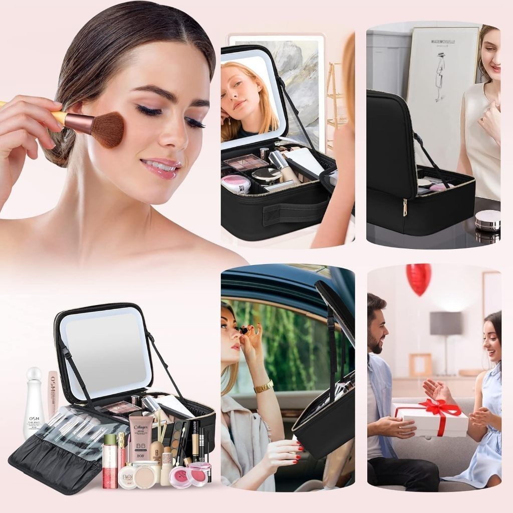Kit Maleta Maquiagem completo Profissional Com Espelho e Luz Led e paleta de maquiagem