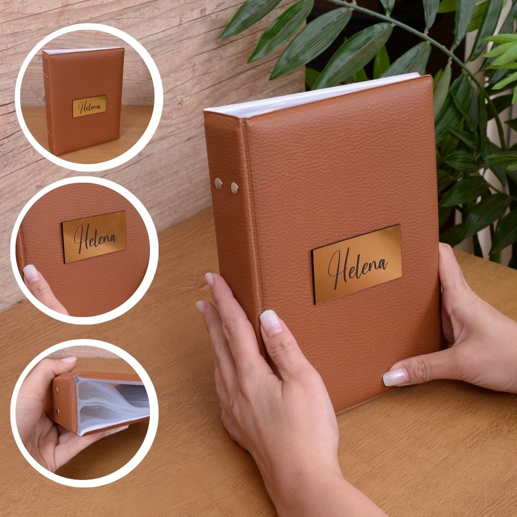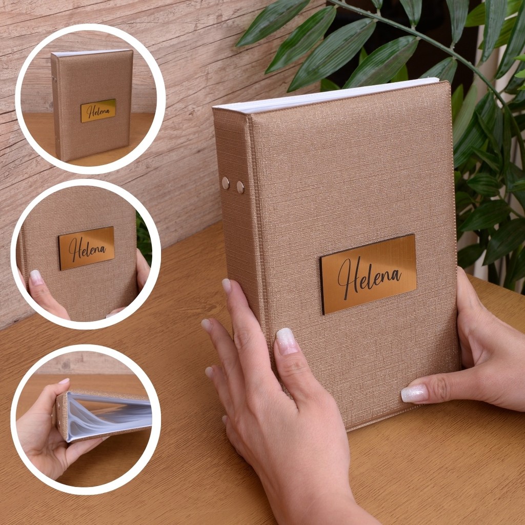 Álbum p 160 fotos 15x21 fotográfico Personalizado com Nome TAG Acrilico Dourado