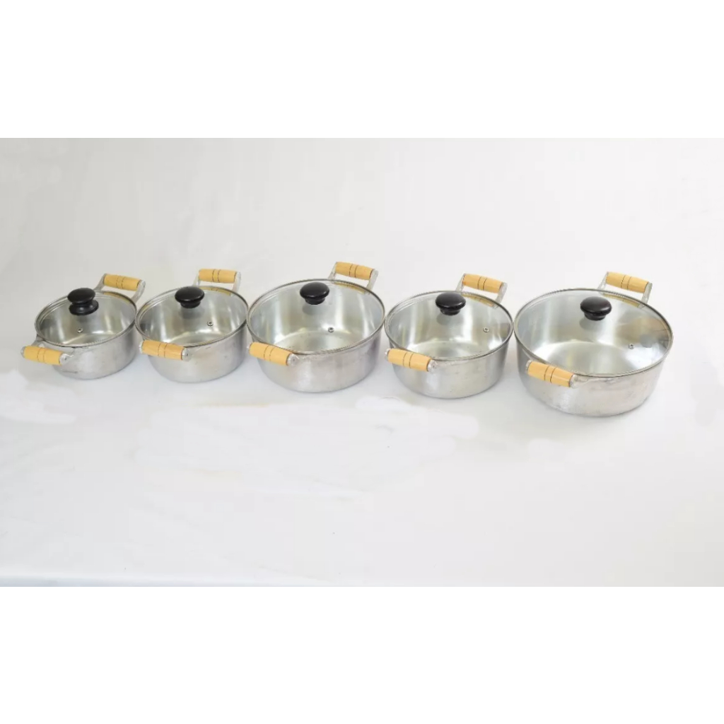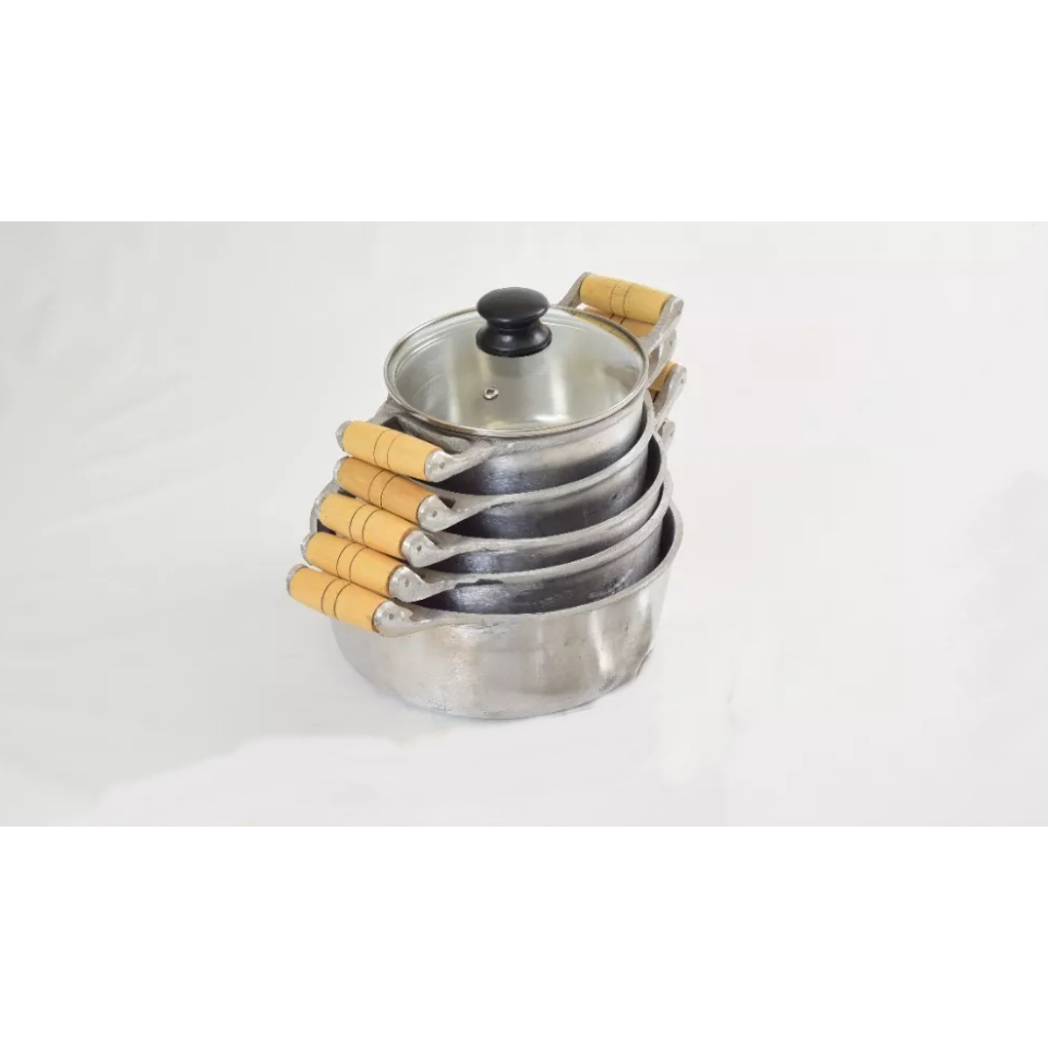 Jogo Panelas Alumínio Batido fundido Tampas De Vidro Cabo De Madeira