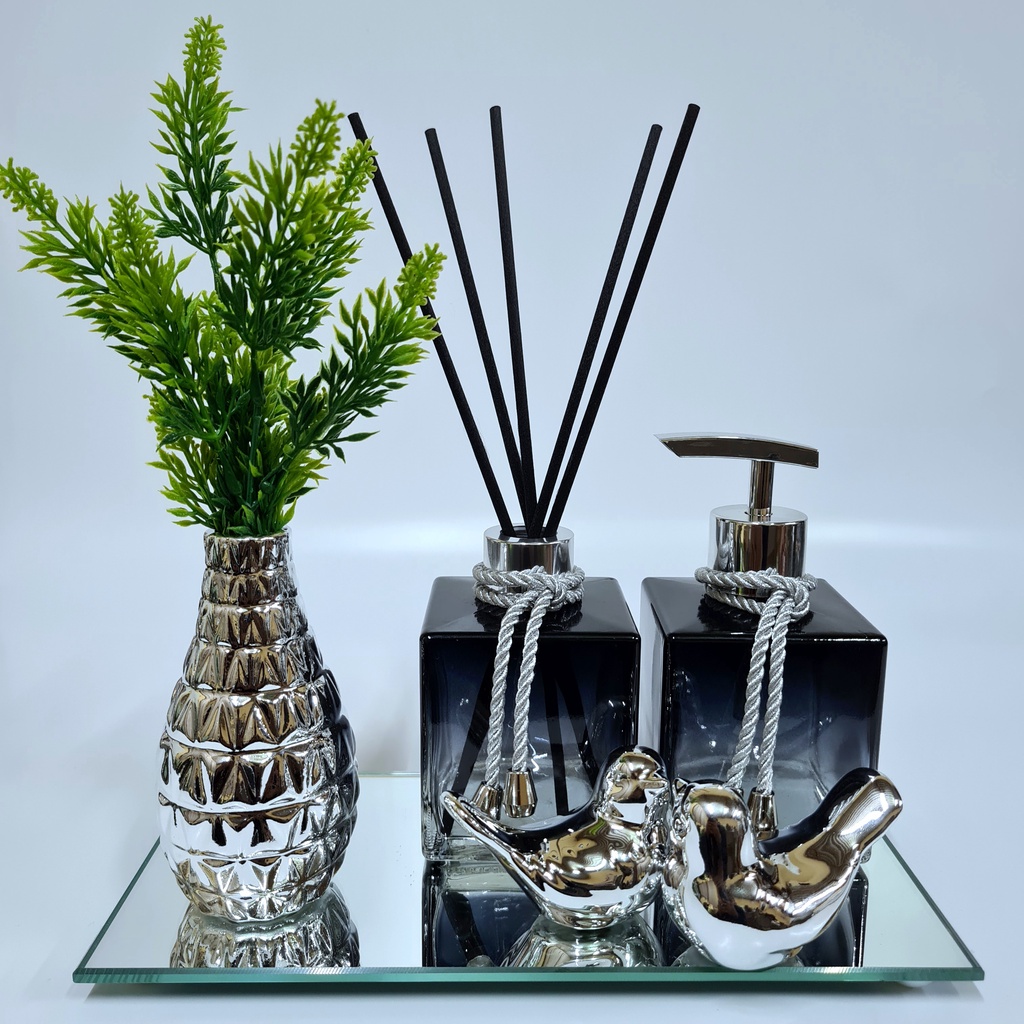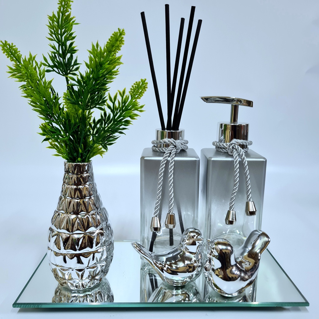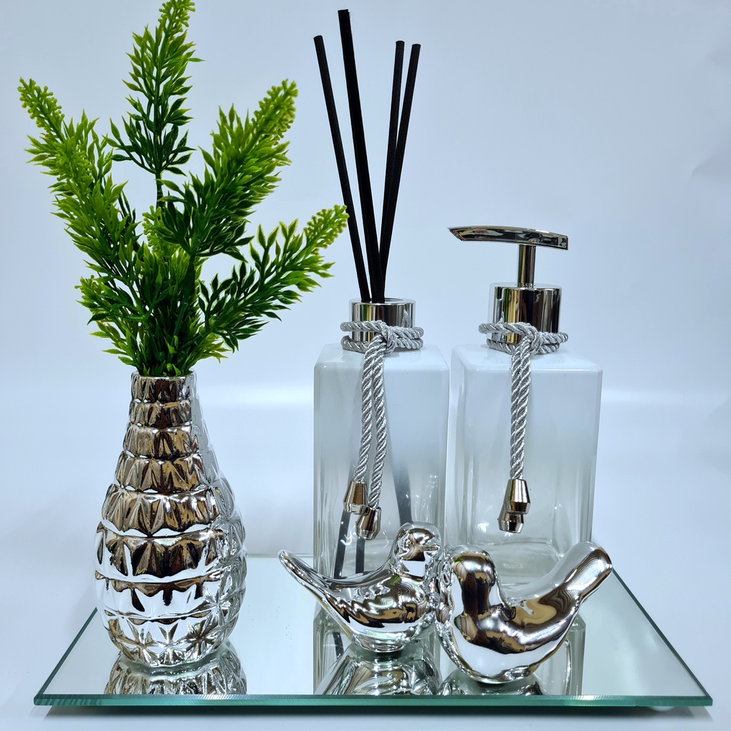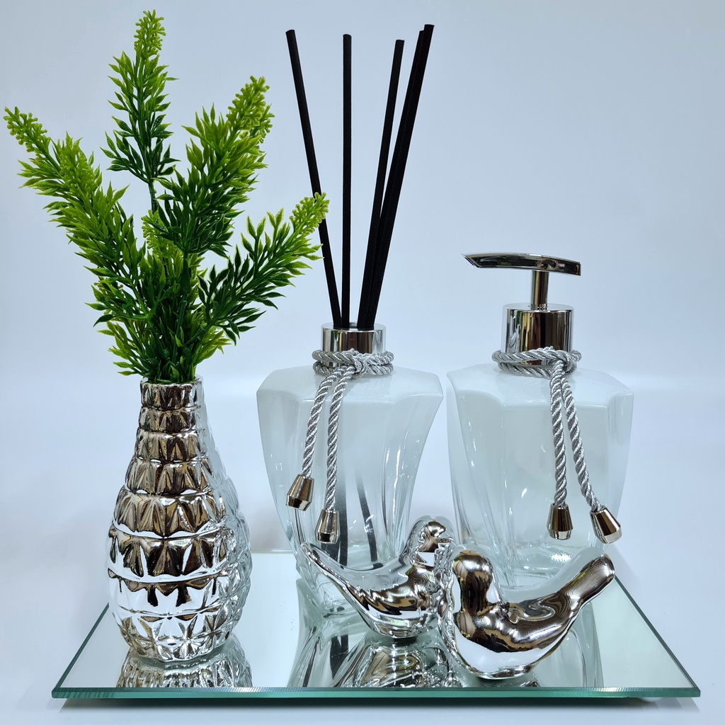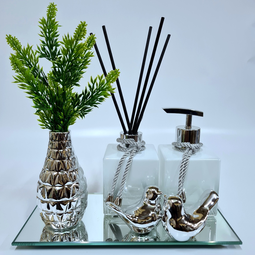 Kit Lavabo Luxo Vasinho , Difusor, Saboneteira, Bandeja Espelhada