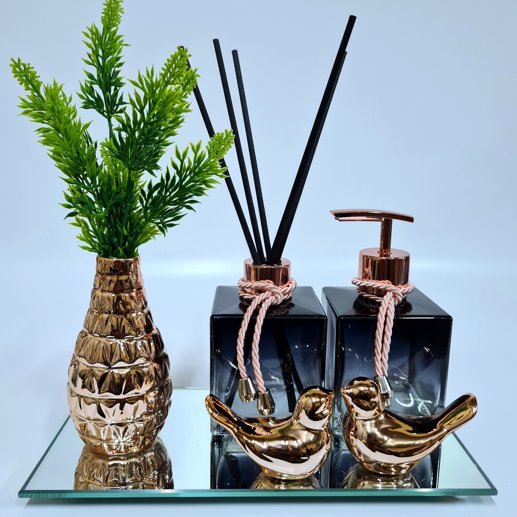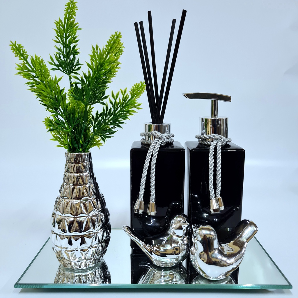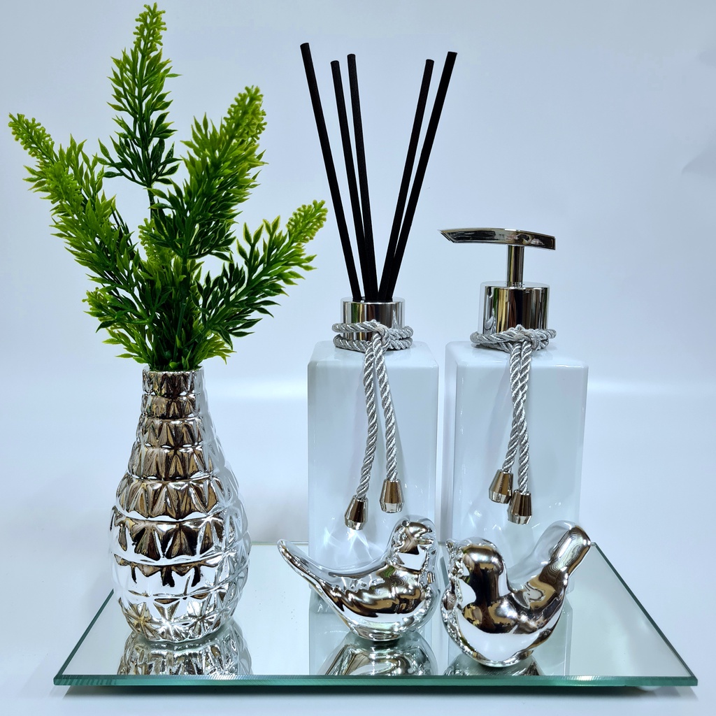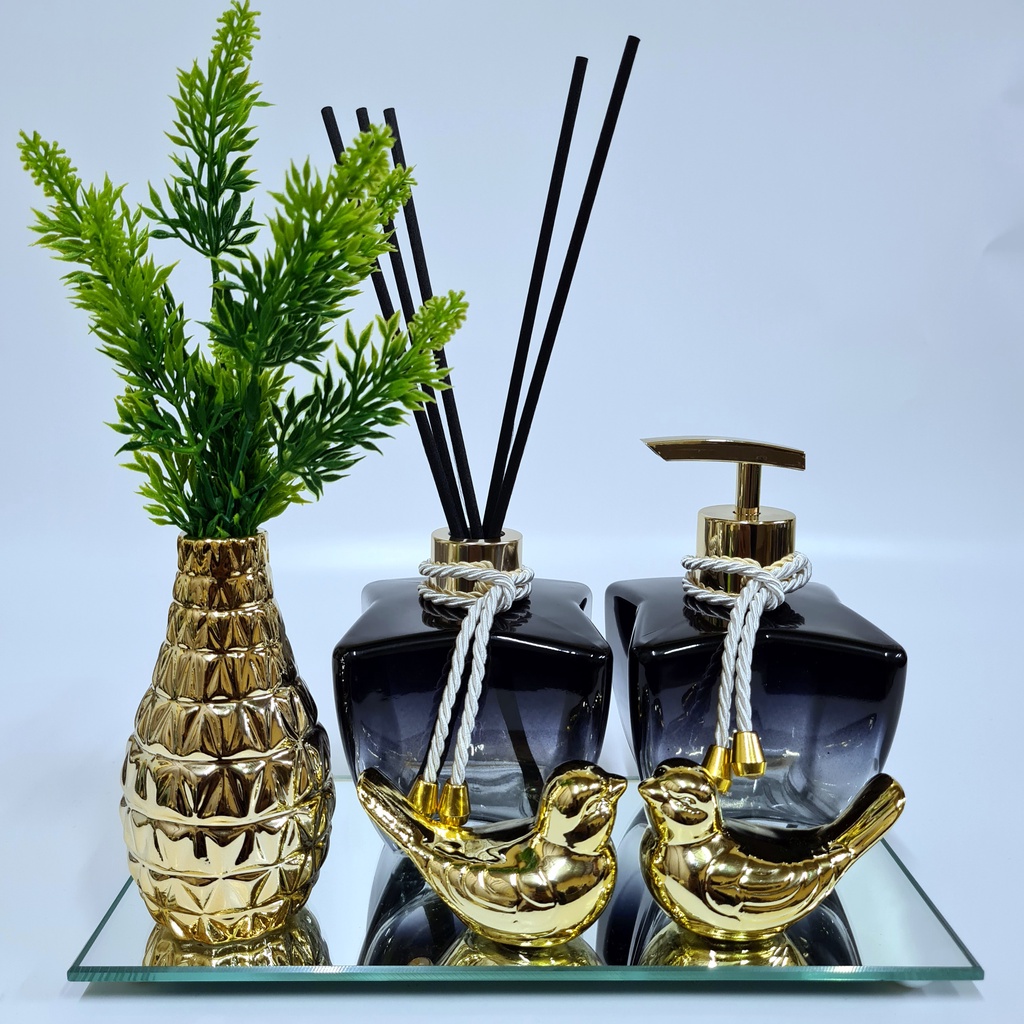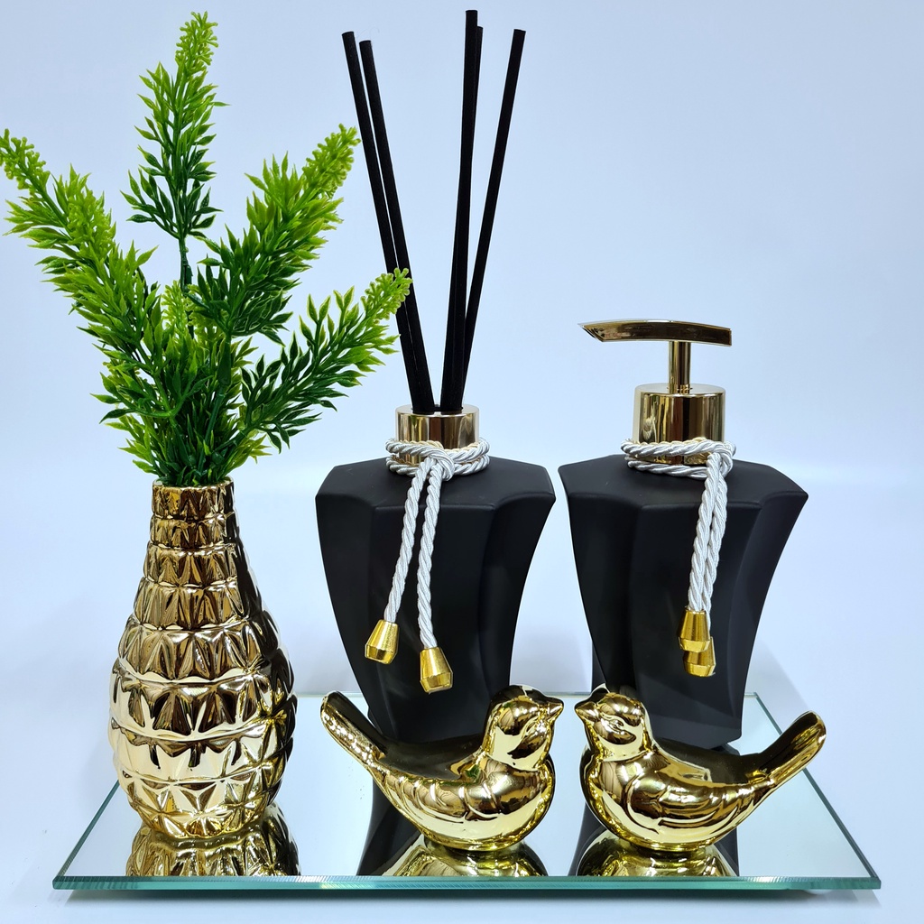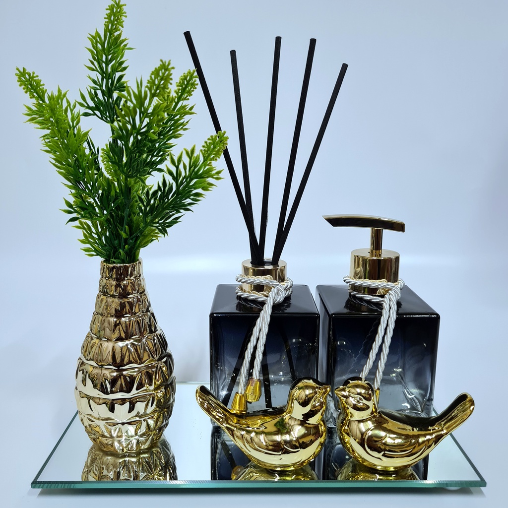 Kit Lavabo Luxo Vasinho , Difusor, Saboneteira, Bandeja Espelhada