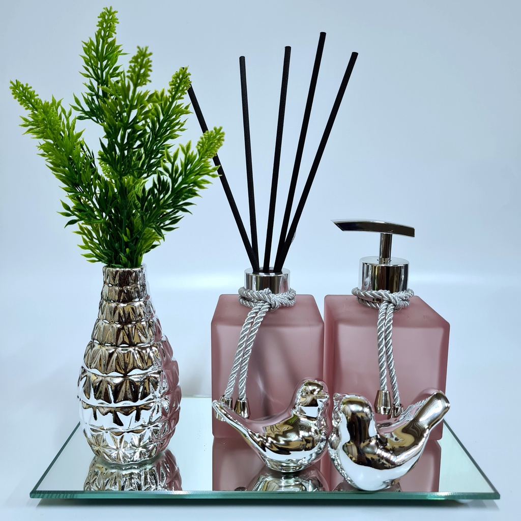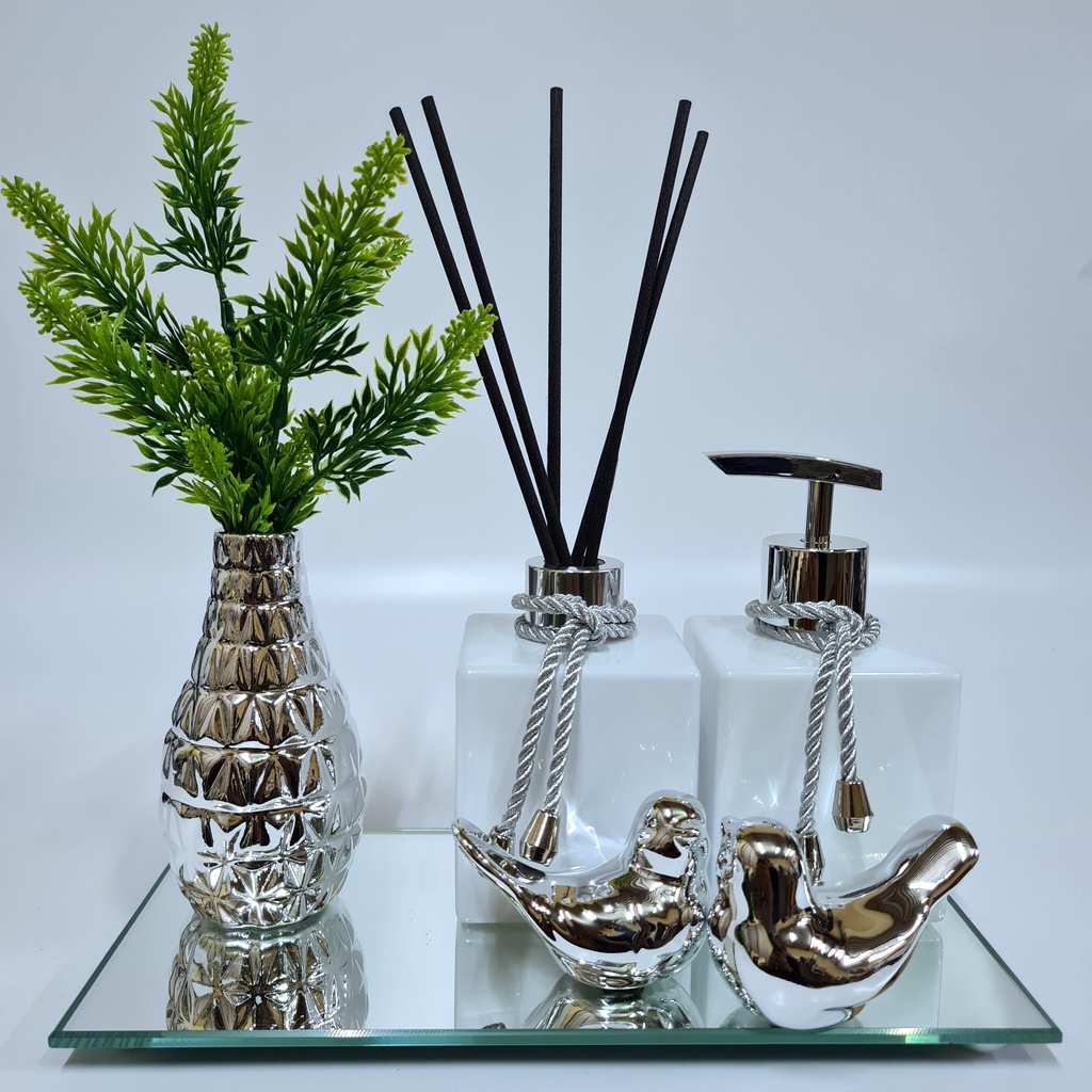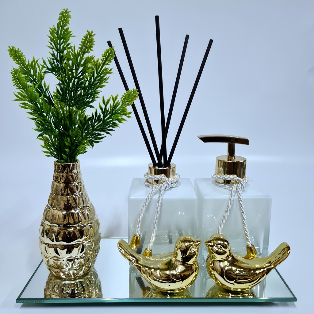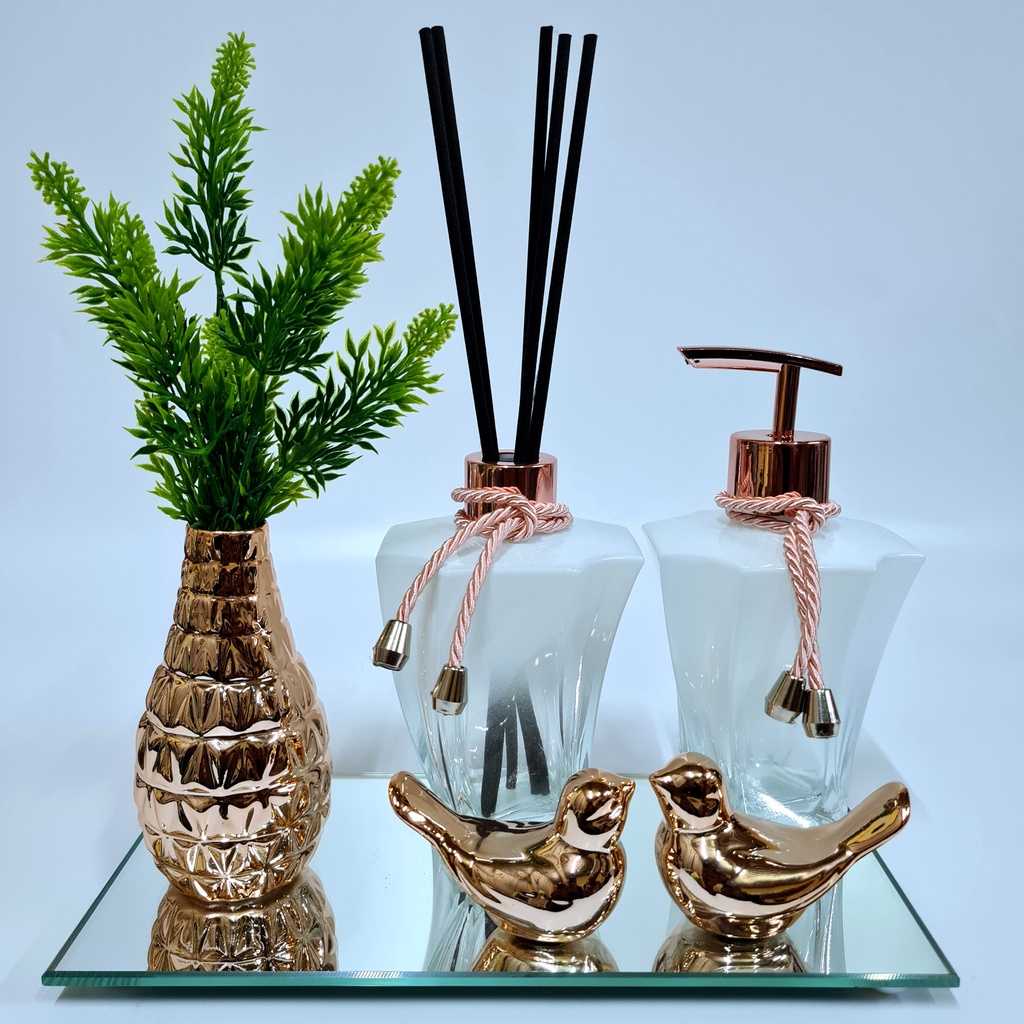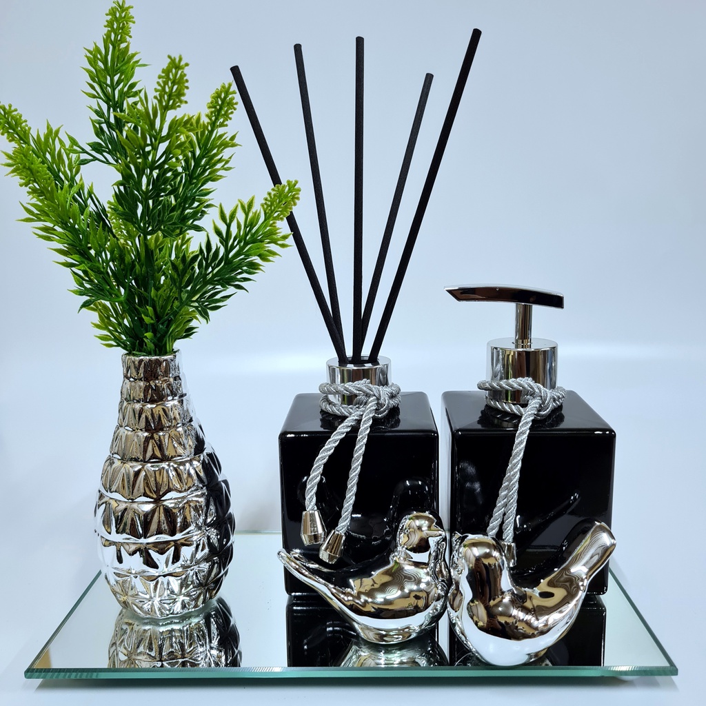 Kit Lavabo Luxo Vasinho , Difusor, Saboneteira, Bandeja Espelhada