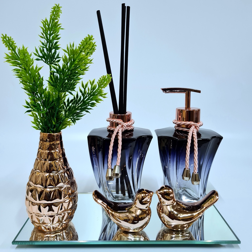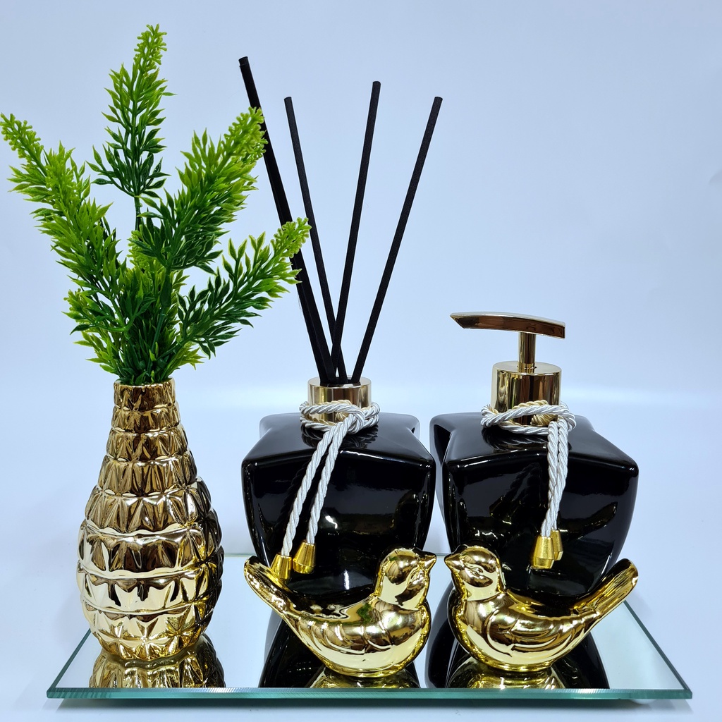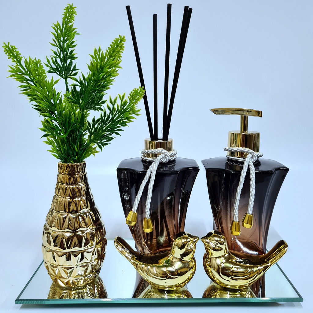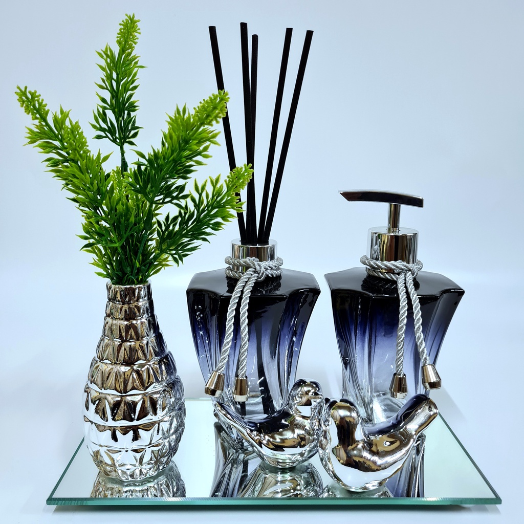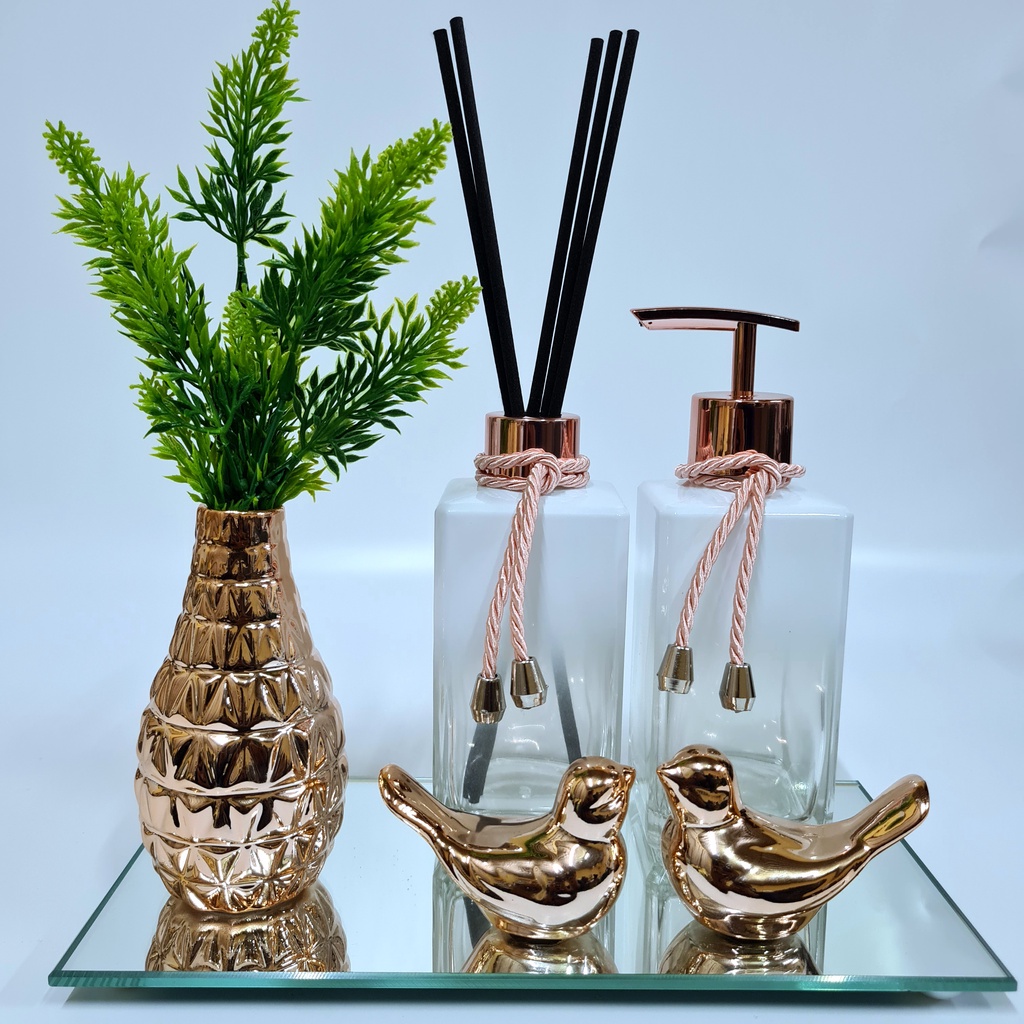 Kit Lavabo Luxo Vasinho , Difusor, Saboneteira, Bandeja Espelhada