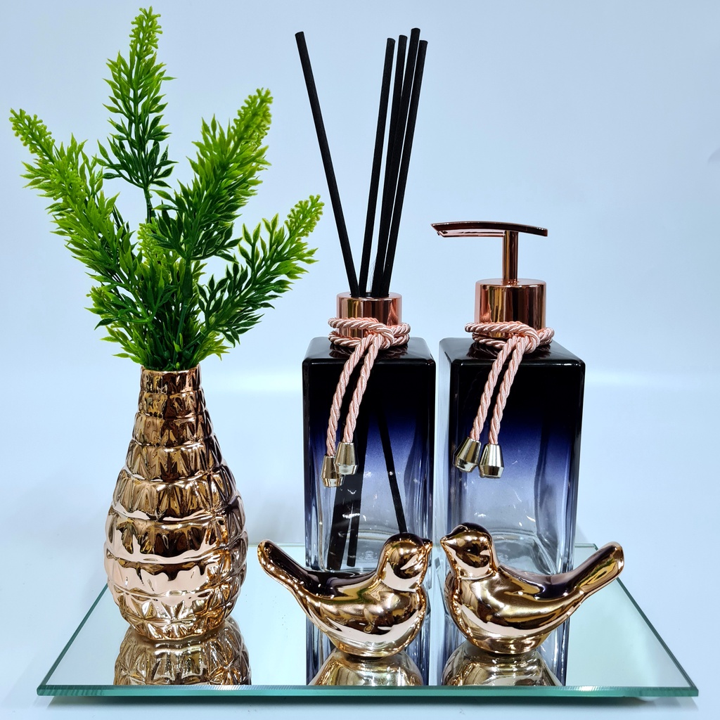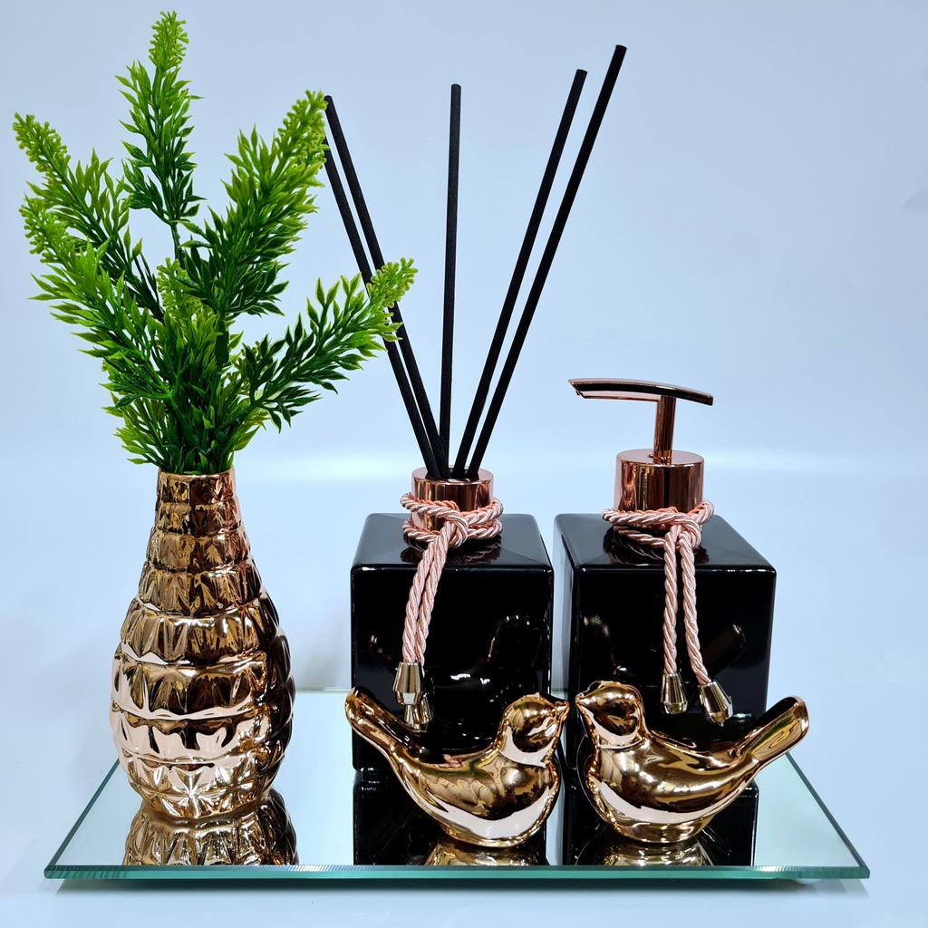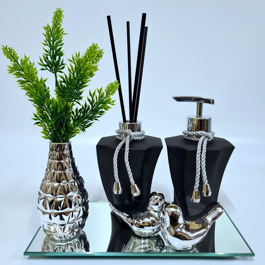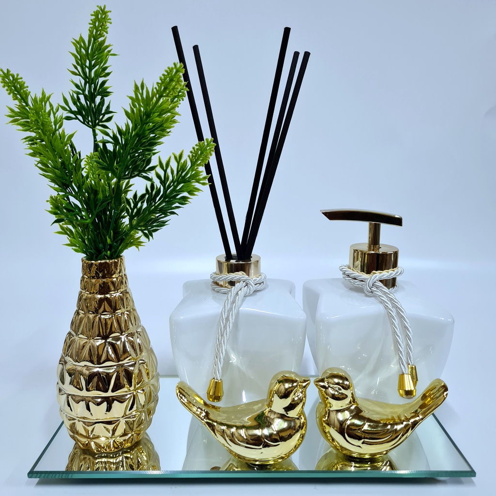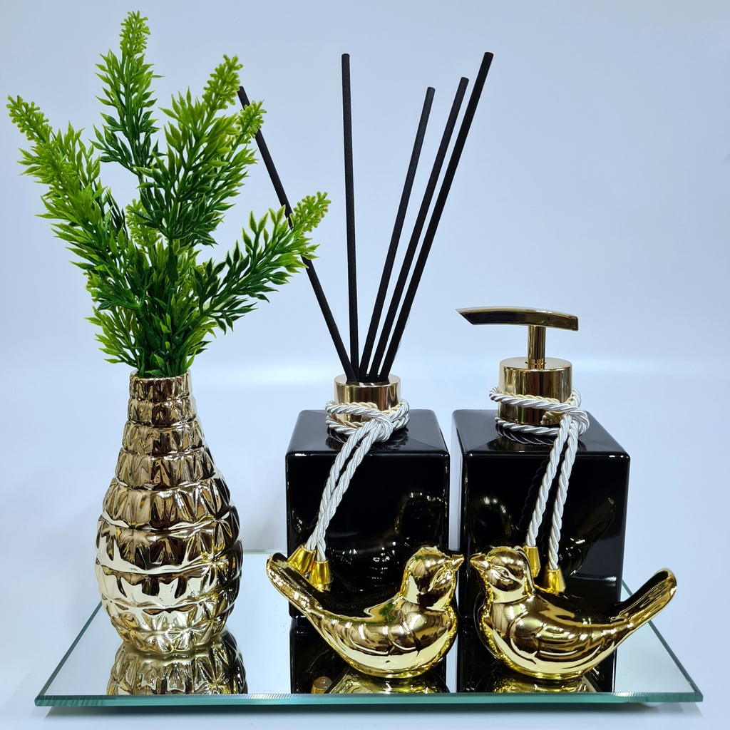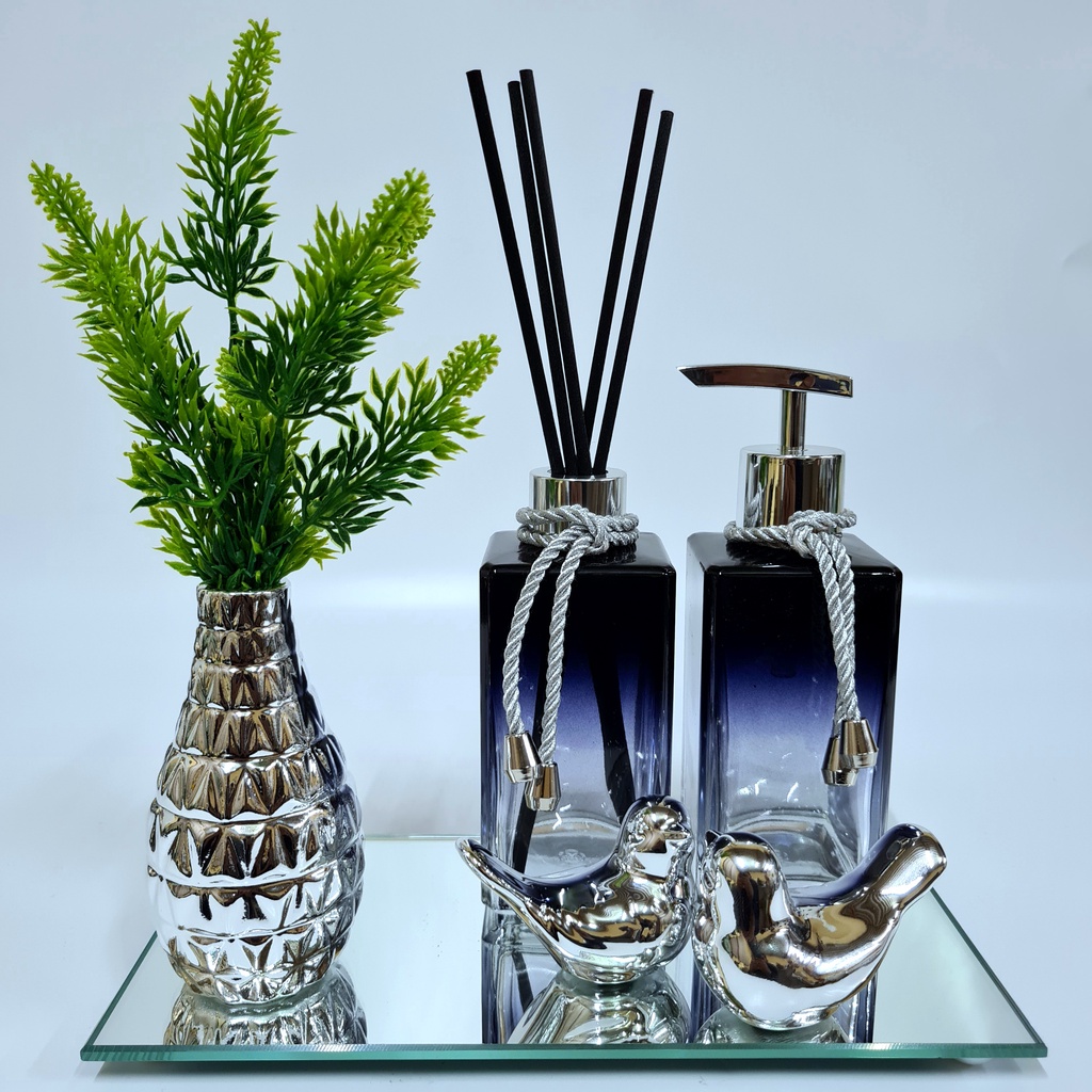 Kit Lavabo Luxo Vasinho , Difusor, Saboneteira, Bandeja Espelhada