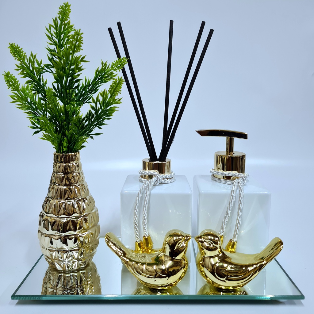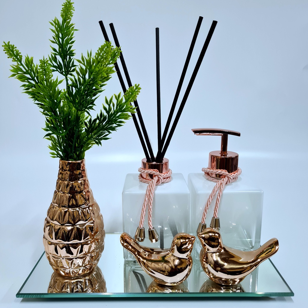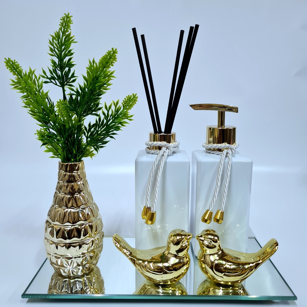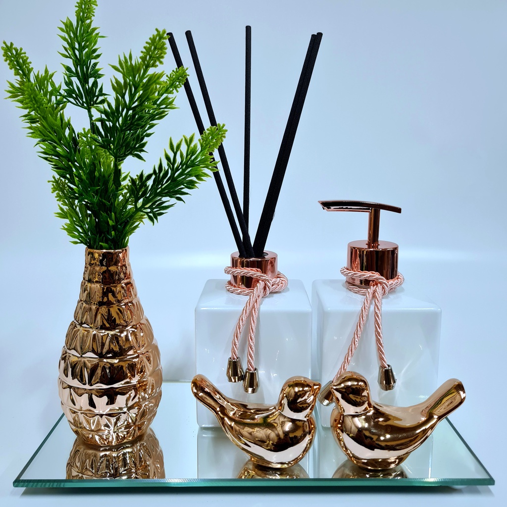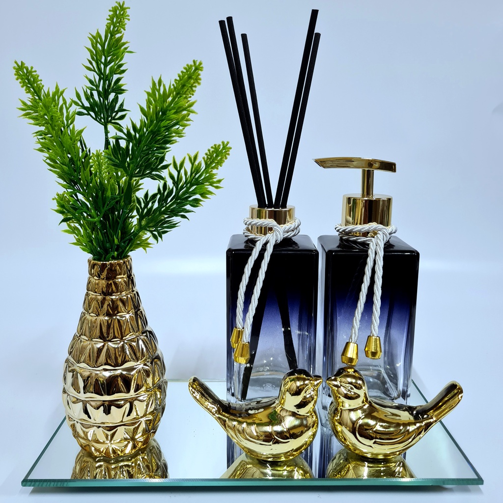 Kit Lavabo Luxo Vasinho , Difusor, Saboneteira, Bandeja Espelhada