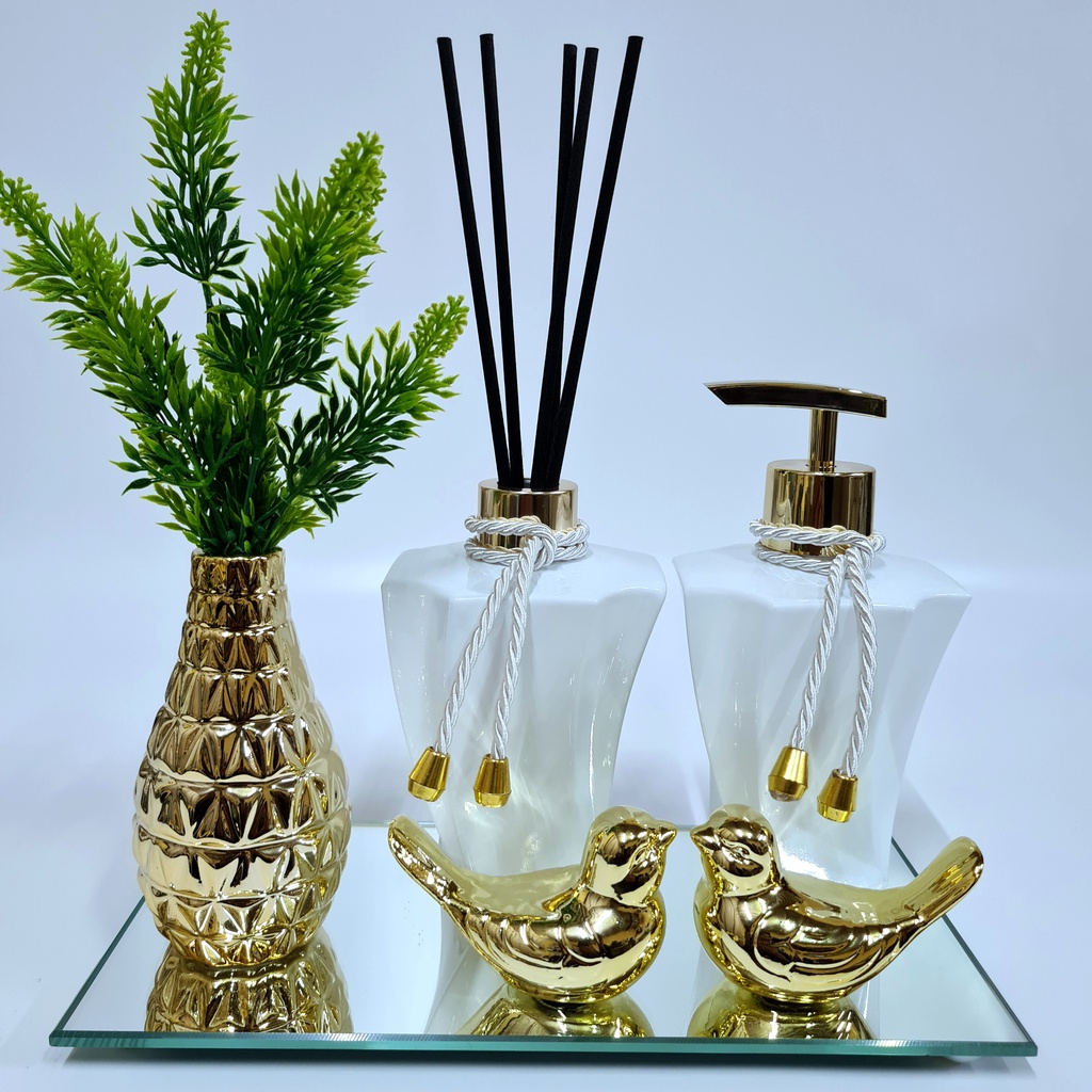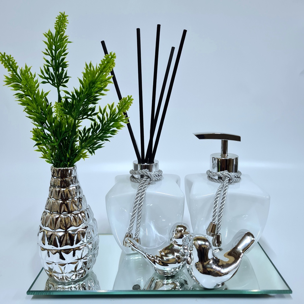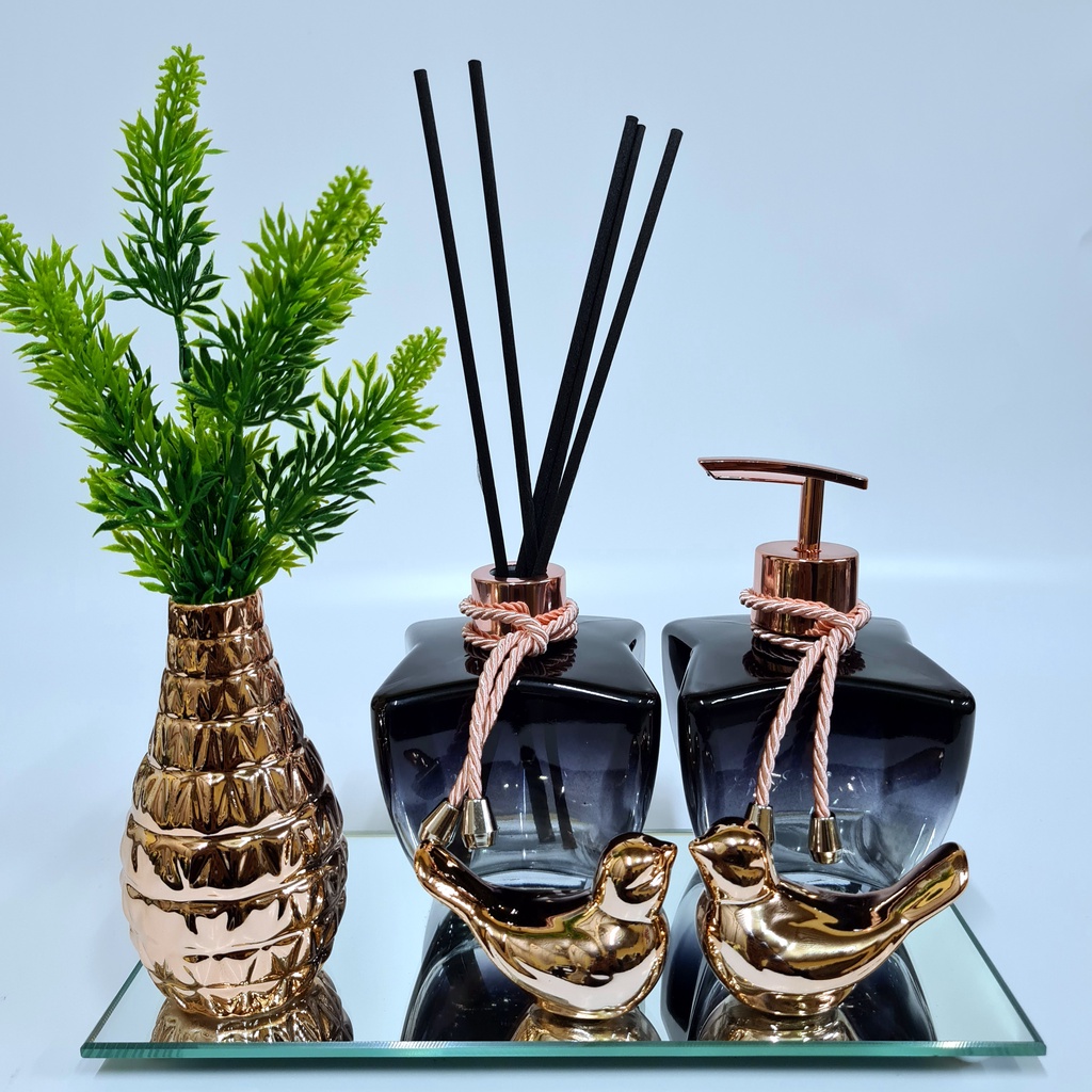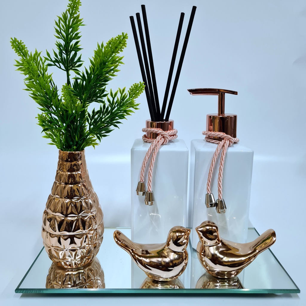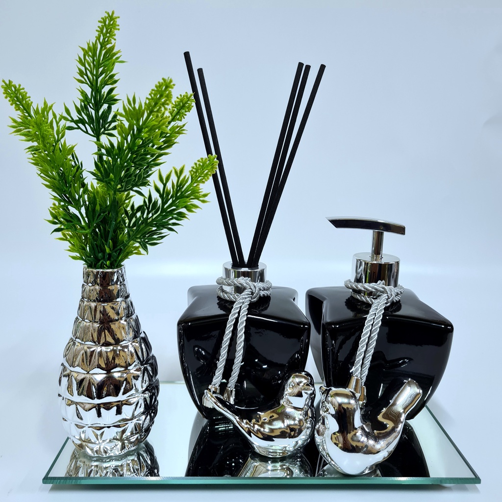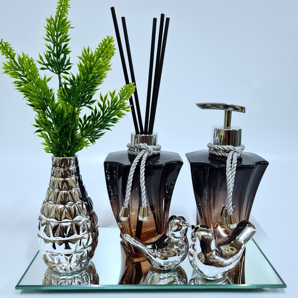 Kit Lavabo Luxo Vasinho , Difusor, Saboneteira, Bandeja Espelhada