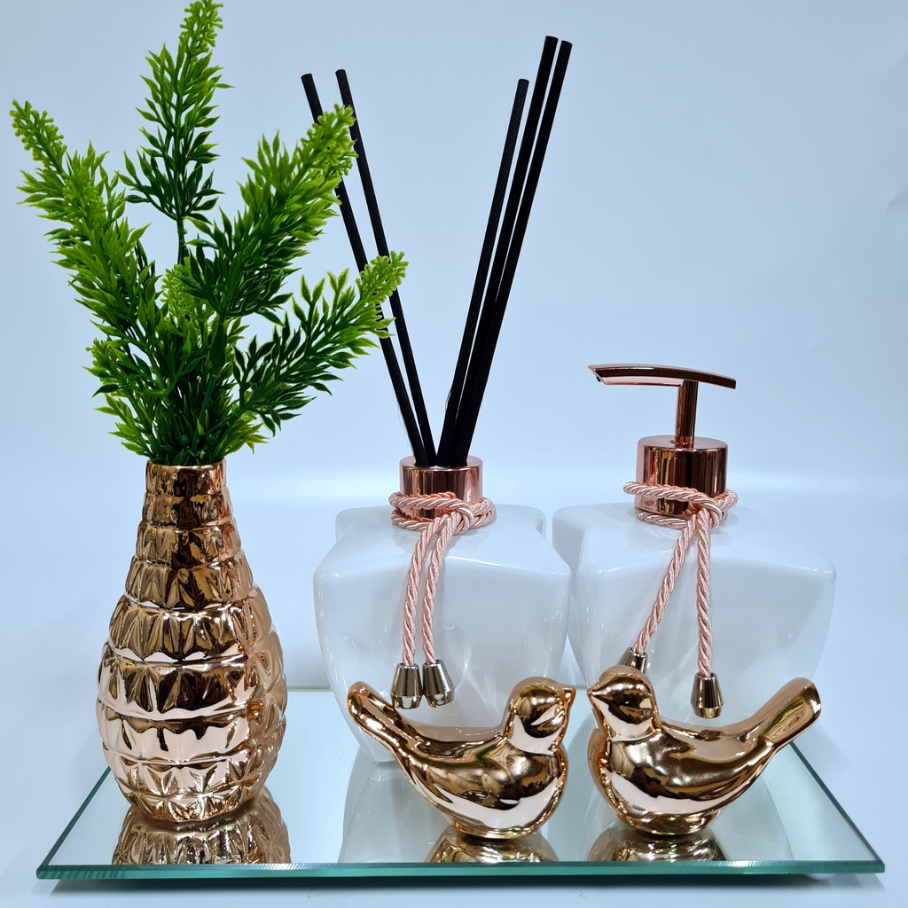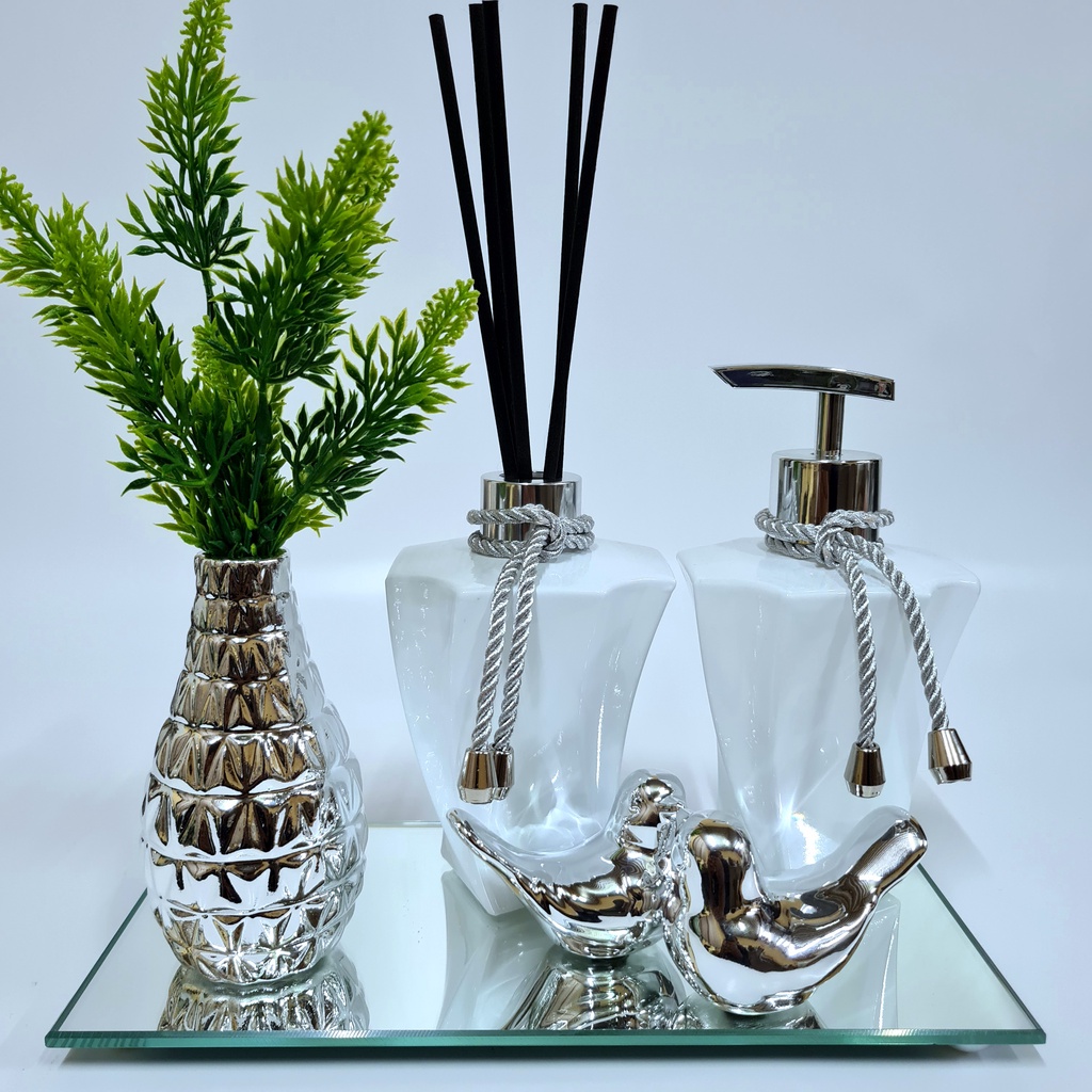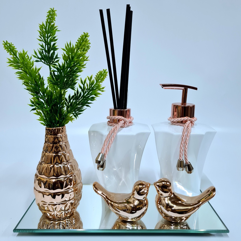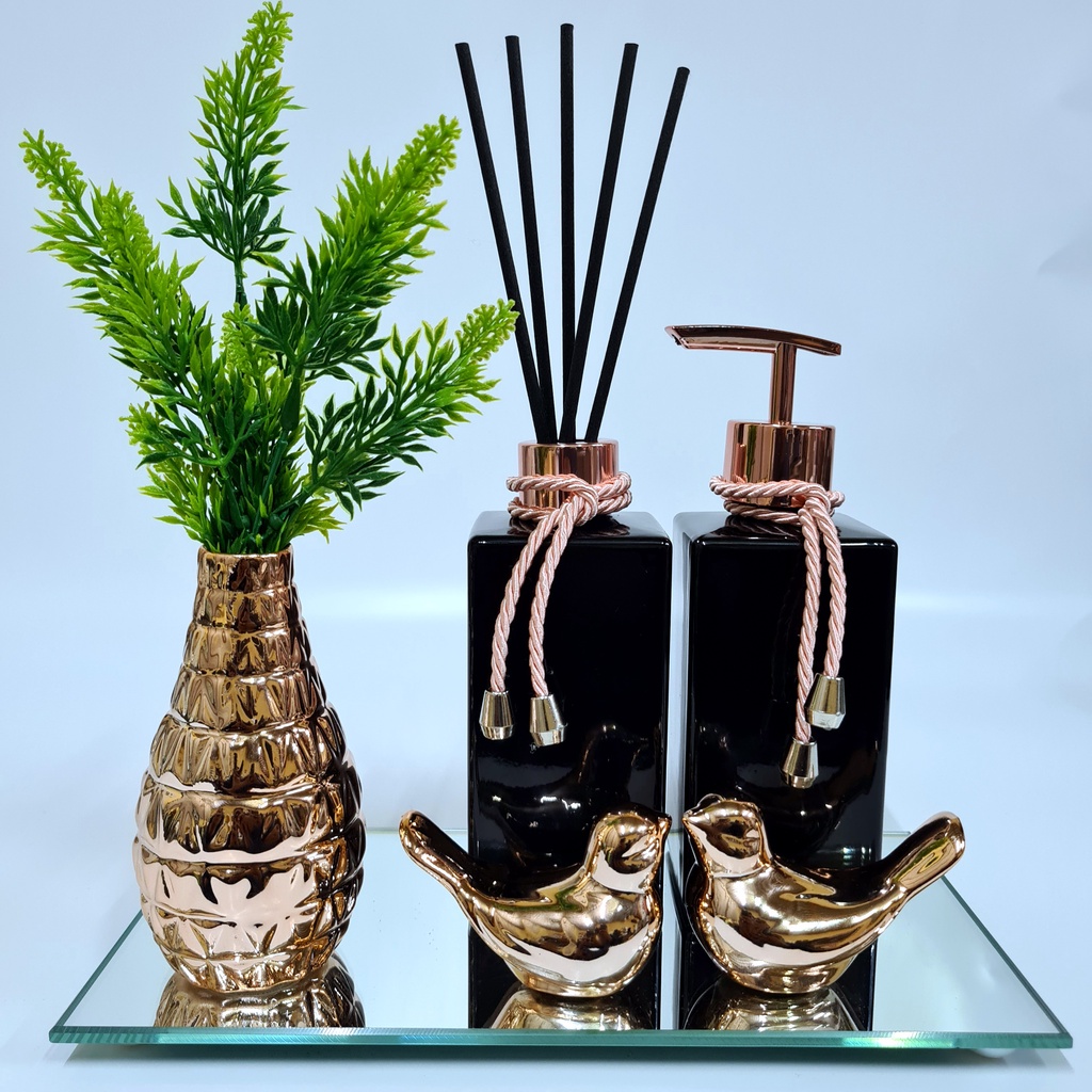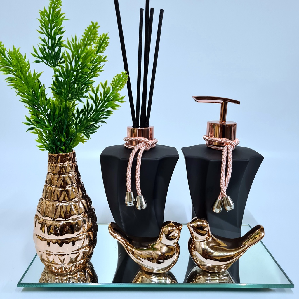 Kit Lavabo Luxo Vasinho , Difusor, Saboneteira, Bandeja Espelhada