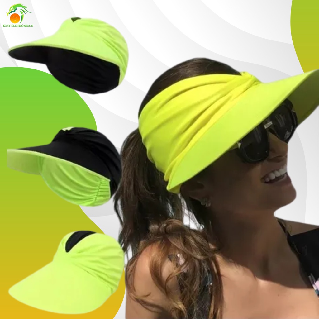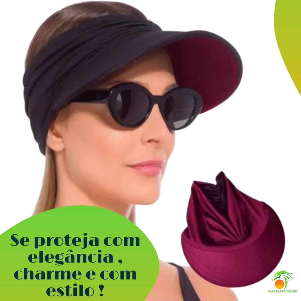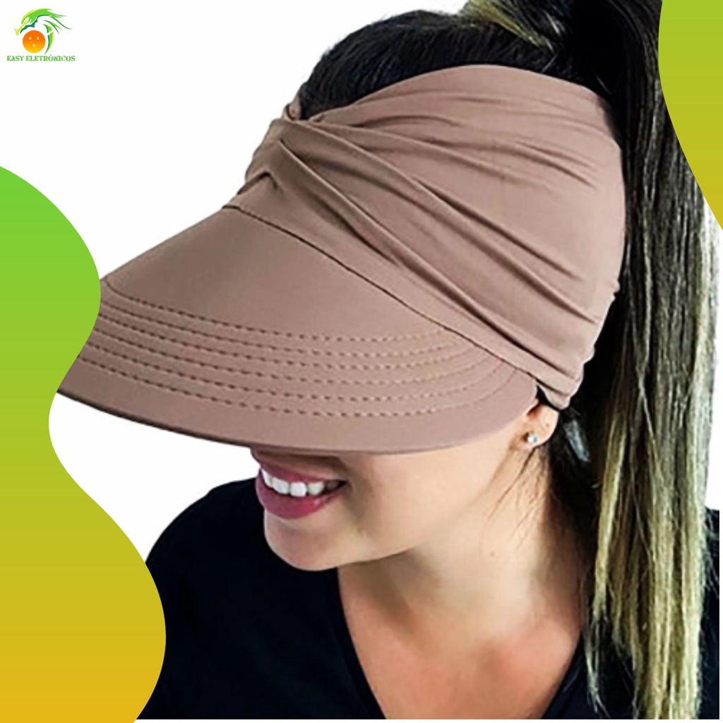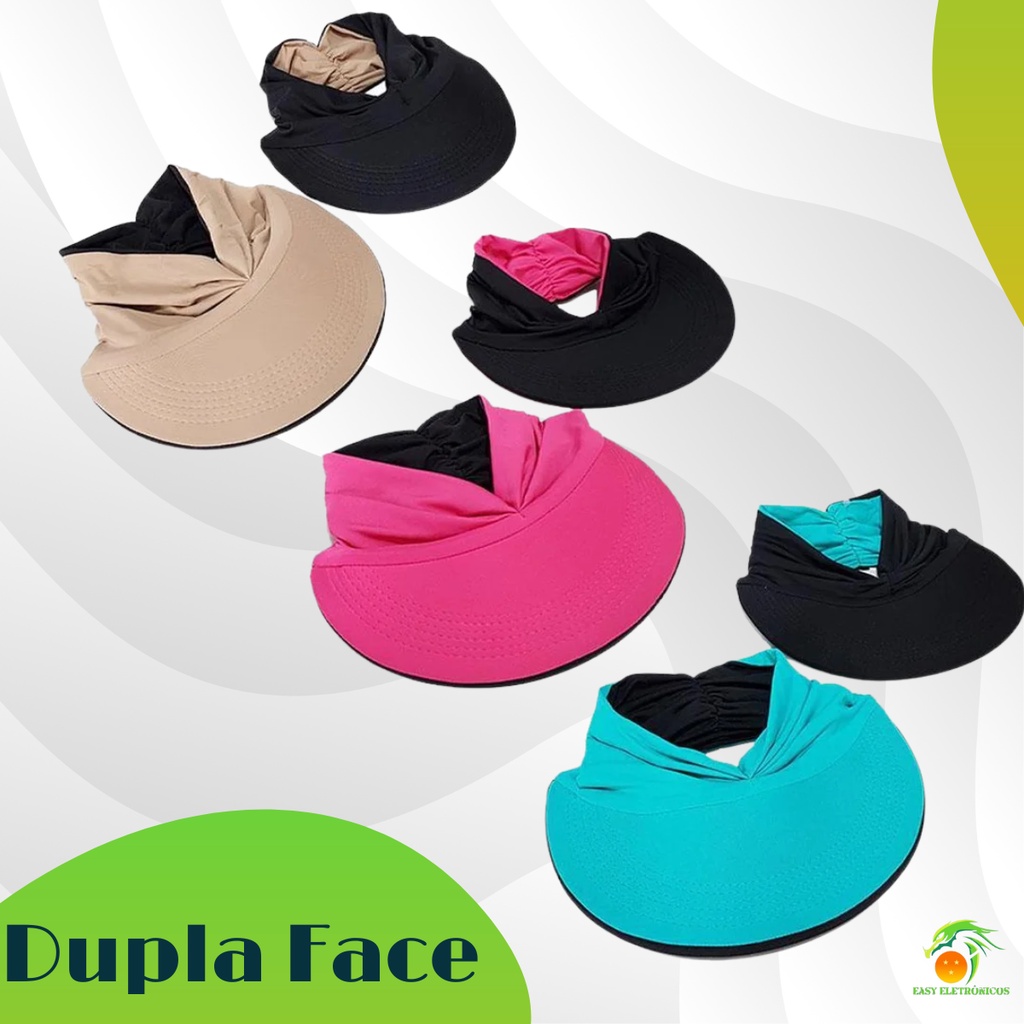 Viseira Dupla Face Proteção Solar Uv50+ Turbante Feminino Bone Piscina Moda Praia