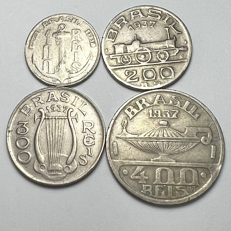 Lote 4 Moedas de 100, 200, 300 e 400 Réis Datas Variadas Ilustres Tamandaré Mauá Carlos Oswaldo