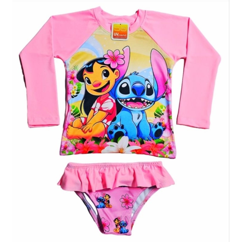 Conjunto Uv Proteção Solar Blusa Biquíni Praia Piscina Menina