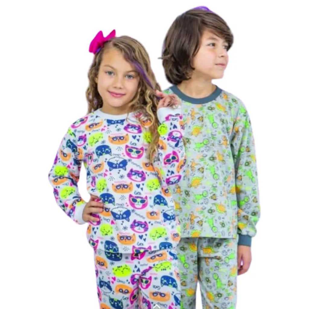 Pijama com Punho Manga Longa Infantil Bebê Menino e Menina Malha 100% Algodão Mafessoni