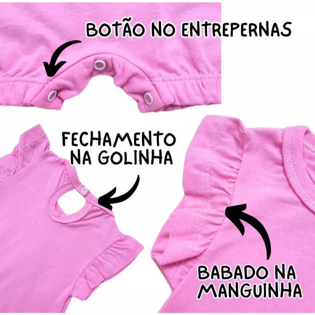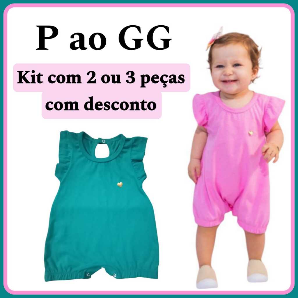 Kit 1, 2 ou 3 Macacão Curto Bebê Feminino Banho de Sol 100% Algodão