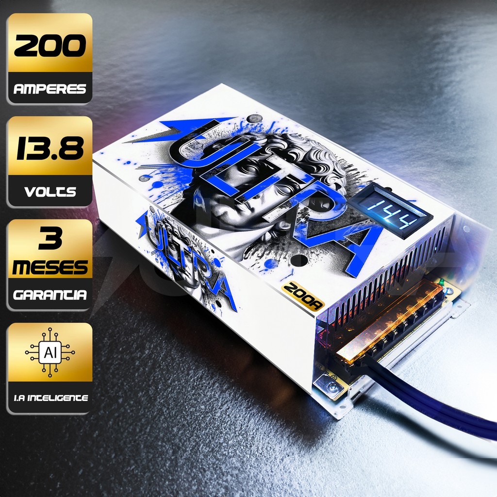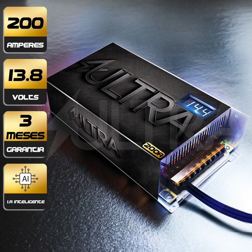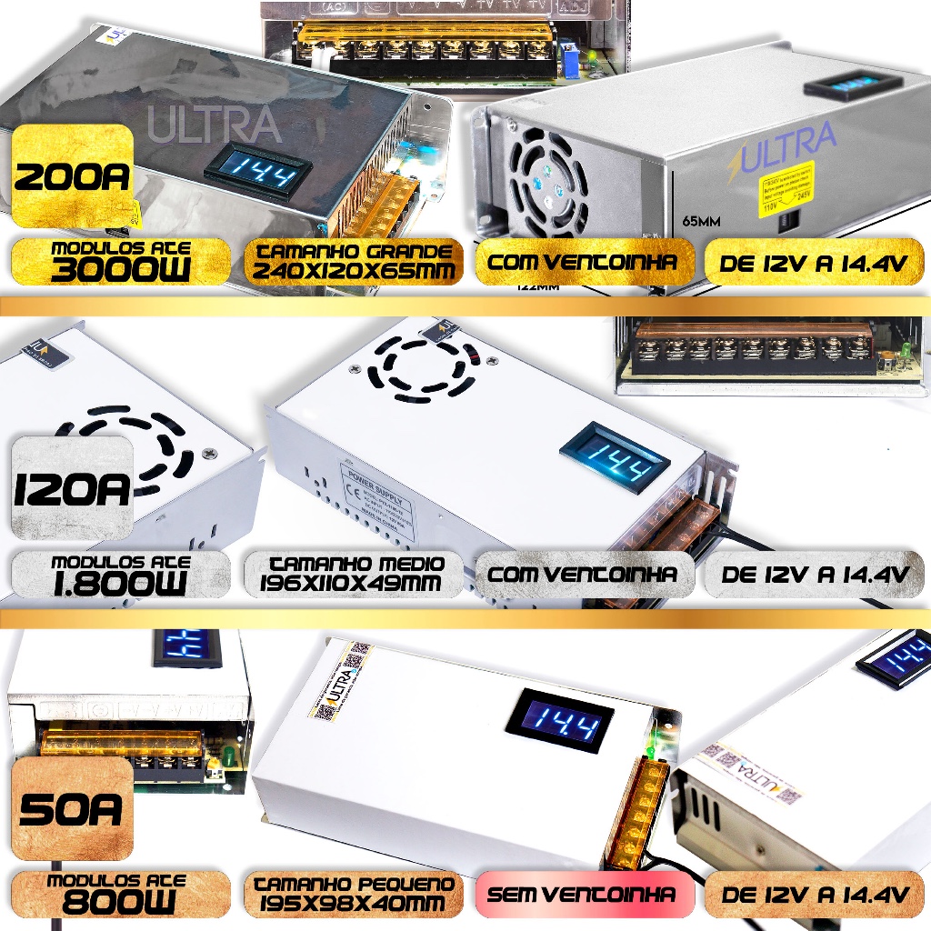 Fonte Automotiva 200A 13.8V Ultra Bivolt 110/220V c/ voltímetro p/ Som Fita LED Radiocomunicadores Mineração Painel sol