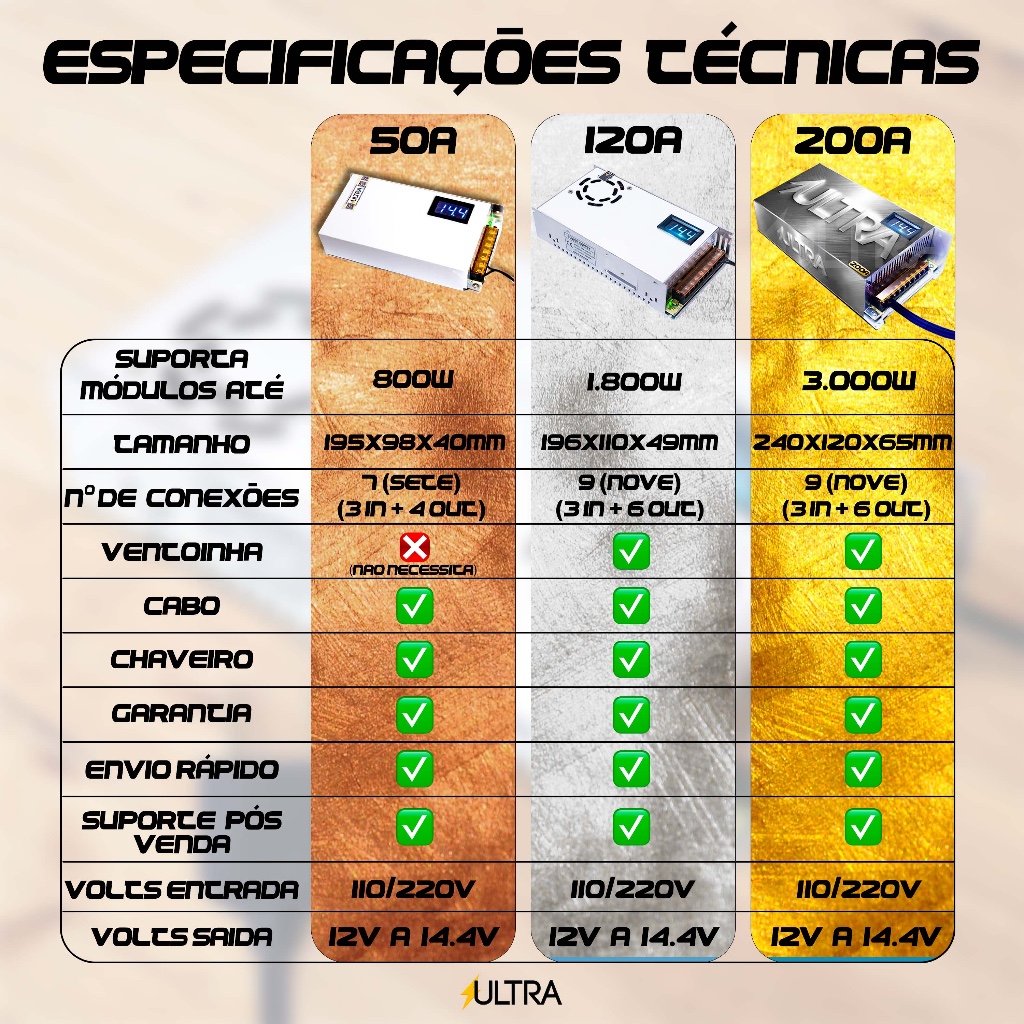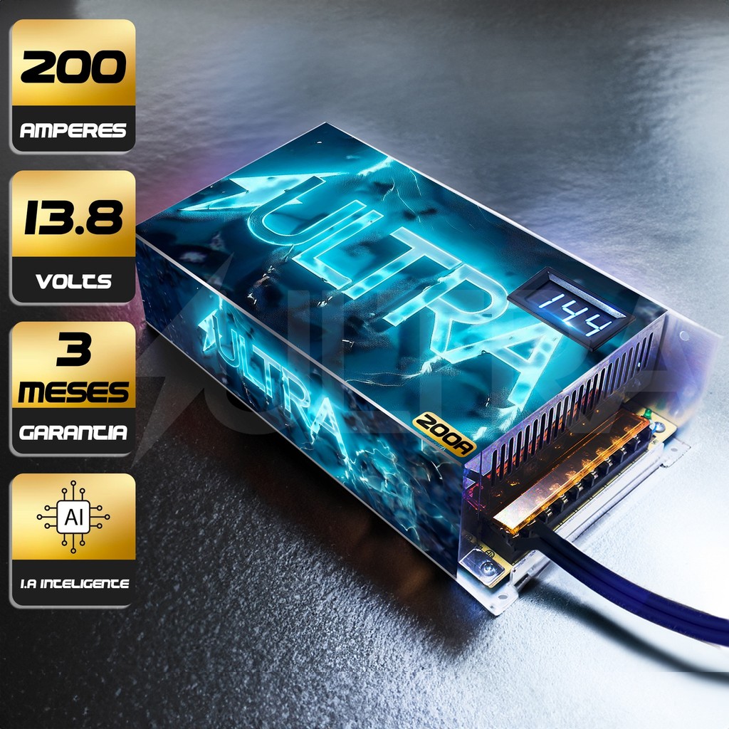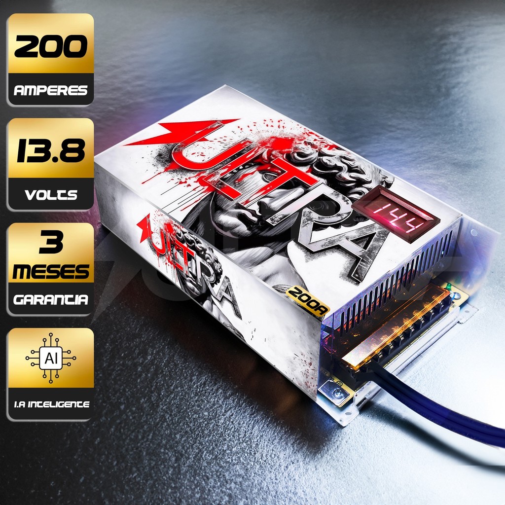 Fonte Automotiva 200A 13.8V Ultra Bivolt 110/220V c/ voltímetro p/ Som Fita LED Radiocomunicadores Mineração Painel sol