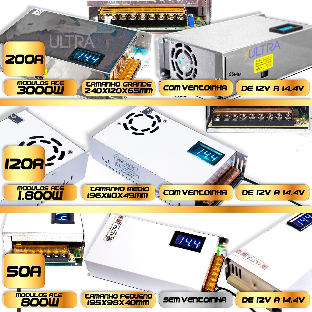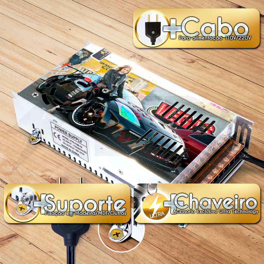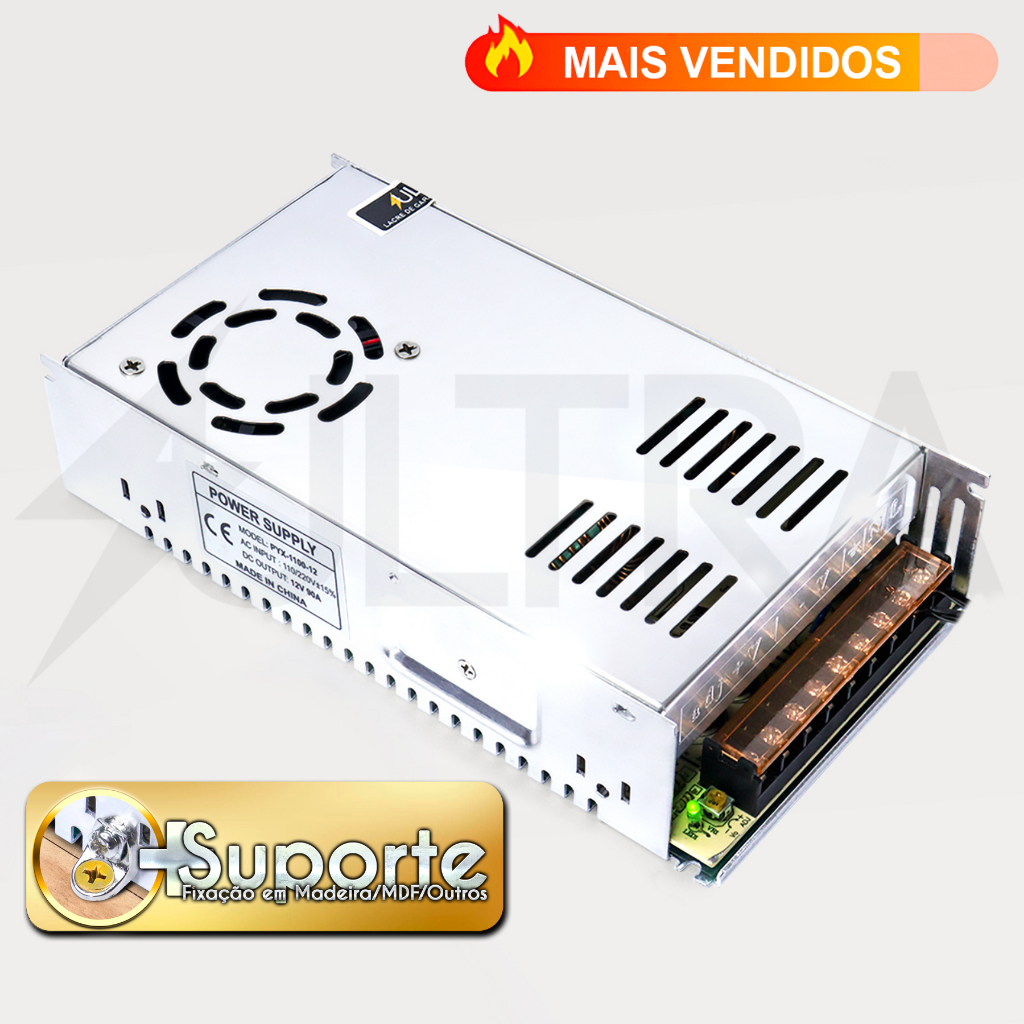 Fonte Automotiva 120A 12V para Som Fita LED Bivolt 13,8V 14,4V 90 substitui Taramps JFA Usina Stetsom Pirâmide Colmeia