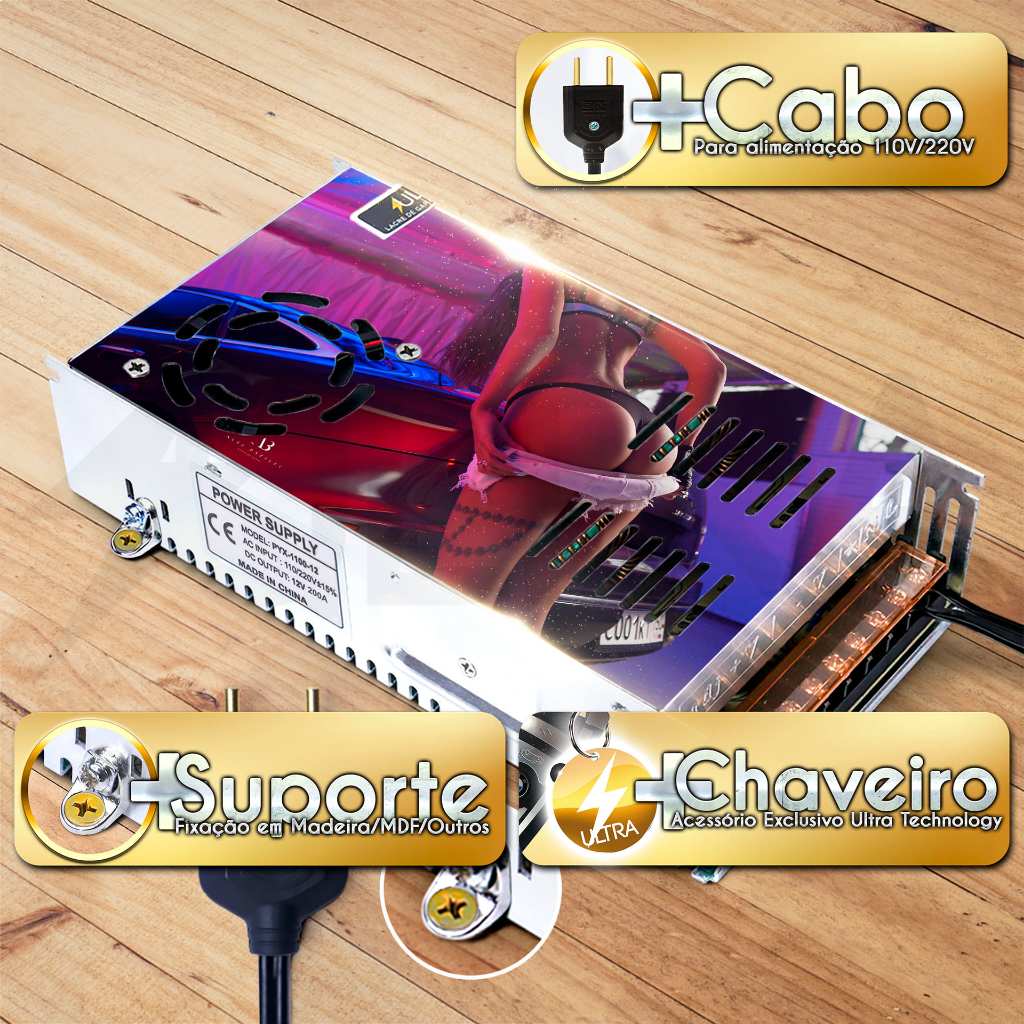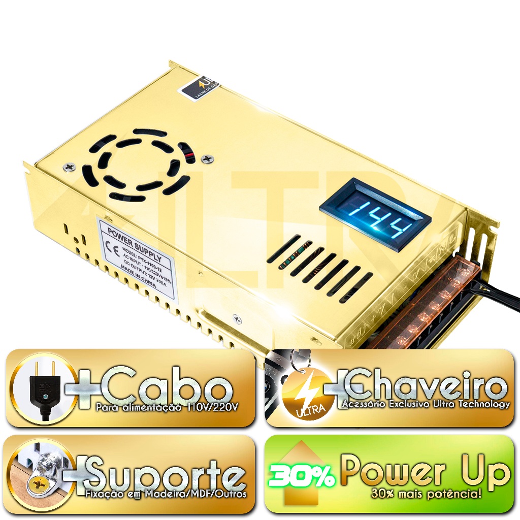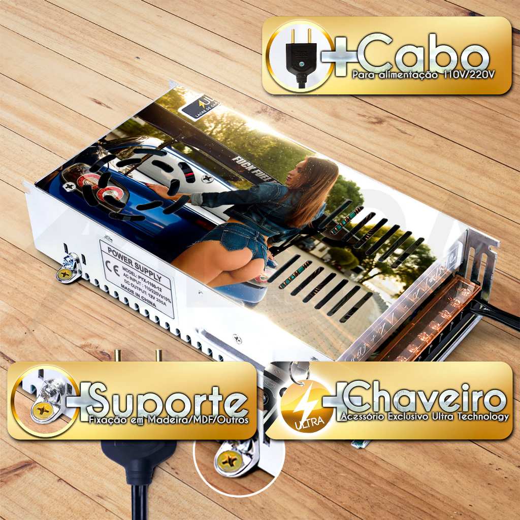 Fonte Automotiva 120A 12V para Som Fita LED Bivolt 13,8V 14,4V 90 substitui Taramps JFA Usina Stetsom Pirâmide Colmeia