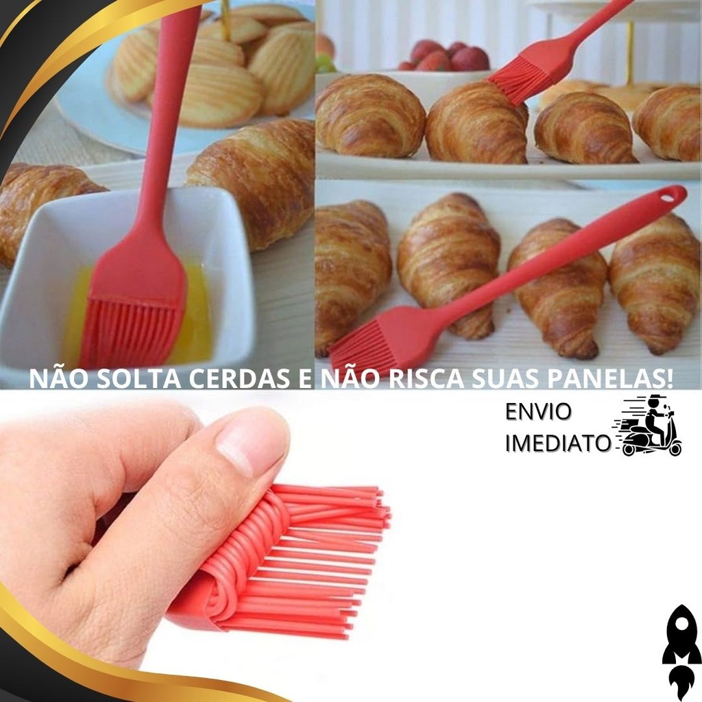 Kit 3/2/1 Pincel Culinário de Silicone Premium para Untar Formas Cozinhar e Confeitar Receitas
