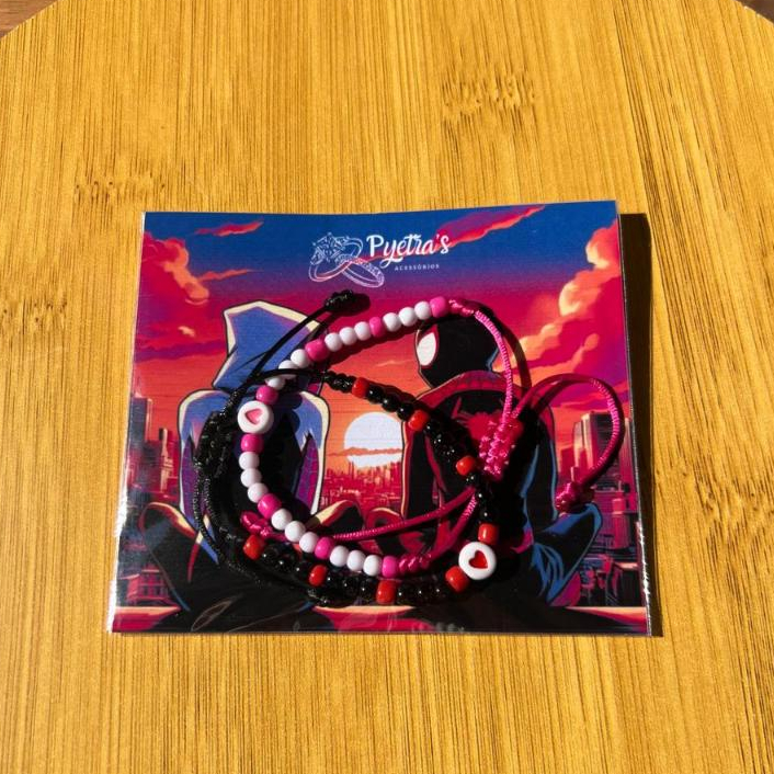Kit Pulseiras Homem Aranha de Pérolas | com cartela | amigos casal amizade namoro