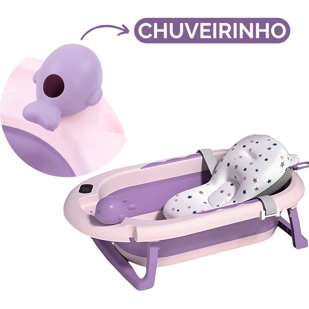 Banheira Com Suporte e Termômetro Tibaby Dobrável Com Almofada Inclusa