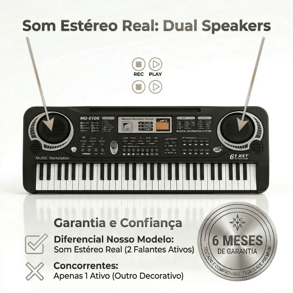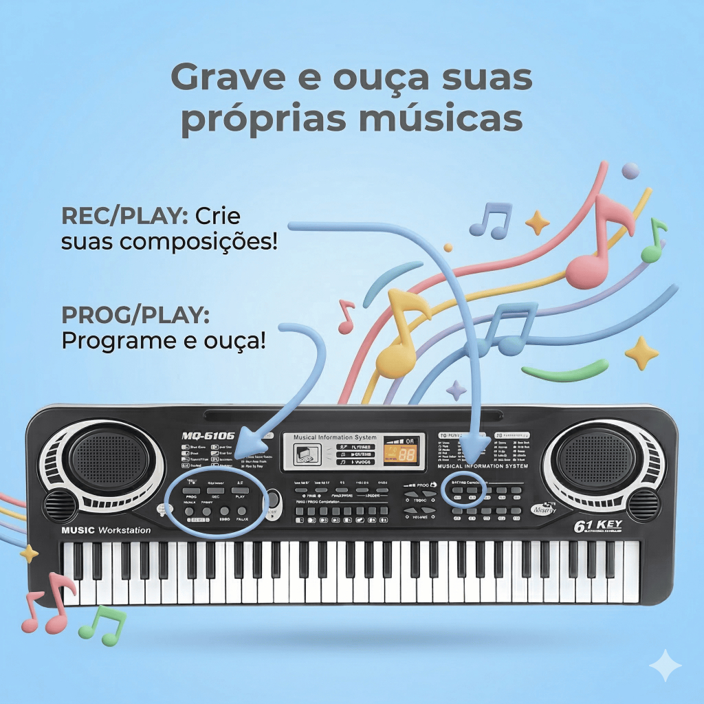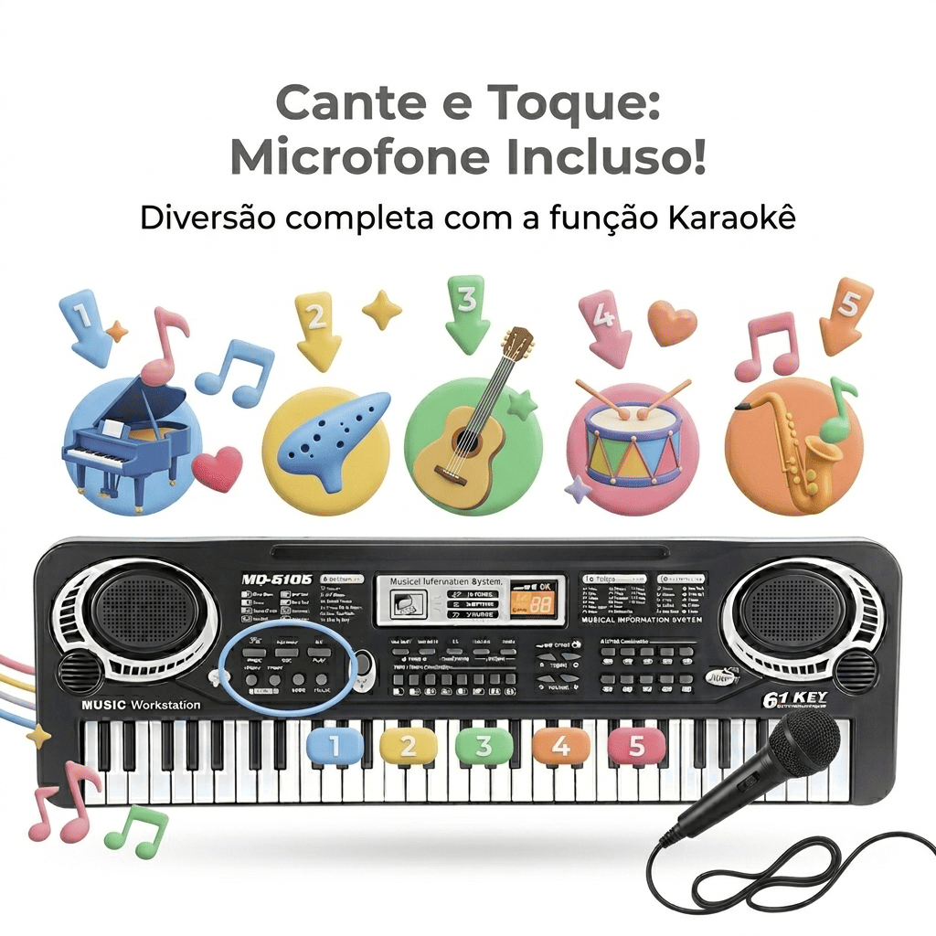 Teclado Eletrônico Música Digital Preto Elétrico Instrumento Infantil Para Aprendizagem