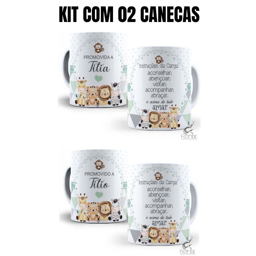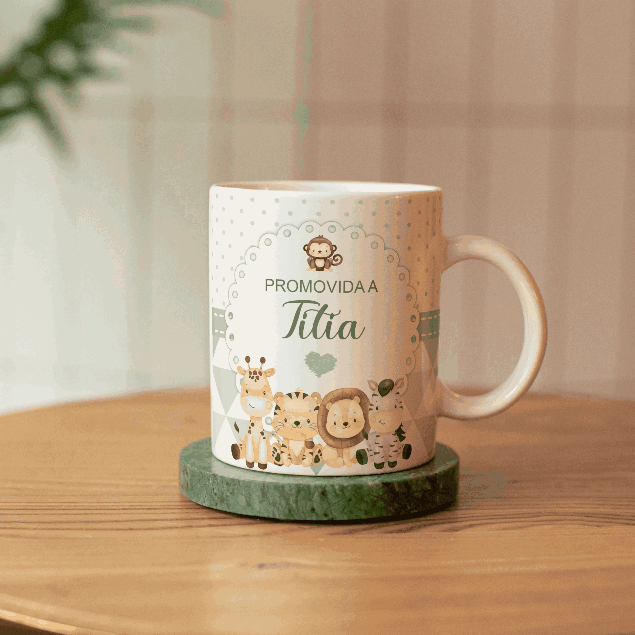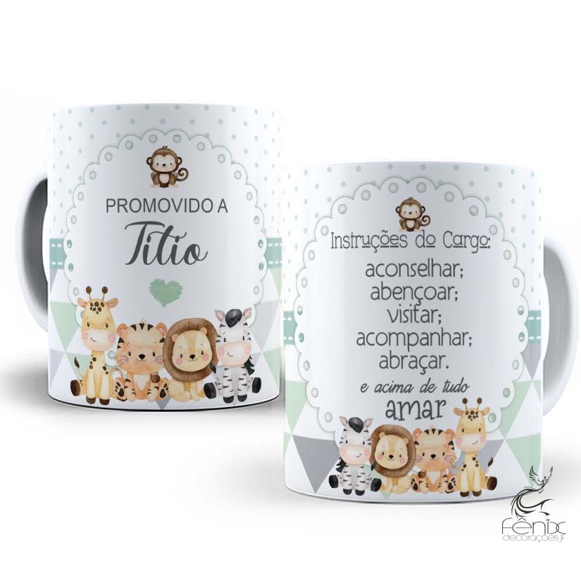Caneca Lembrancinha Promovida a Titia - Titio Safari - Porcelana Personalizada 325 ML