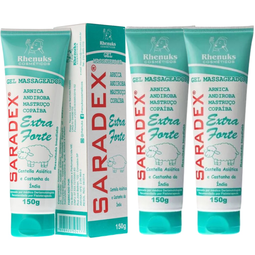 KIT C/ 3 unid. SARADEX EXTRA FORTE Alivio de dor - Pomada em Gel Massageador - Rhenuks