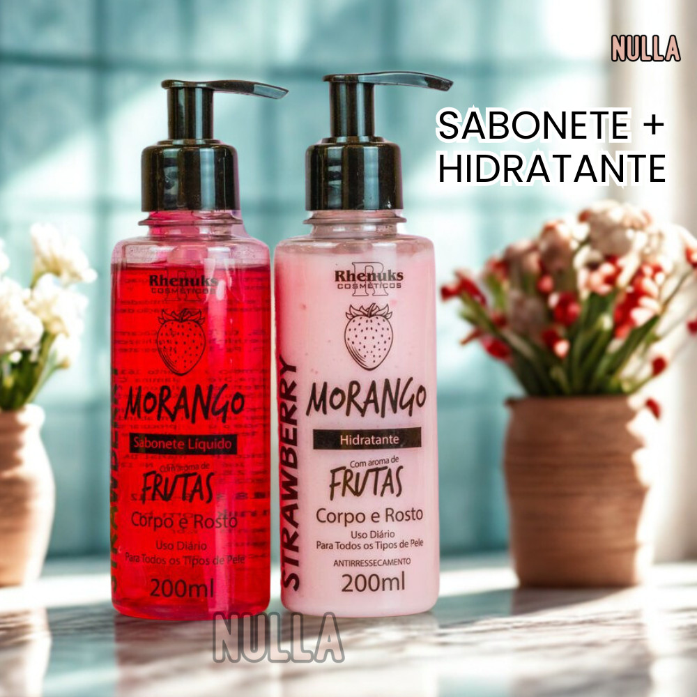 KIT SABONETE + HIDRATANTE + ESFOLIANTE MORANGO CORPO E ROSTO RHENUKS