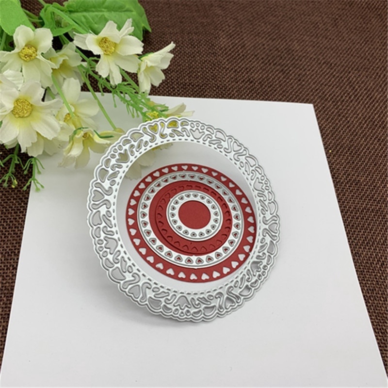 5 Pçs/Lote Redondo Em Forma De Coração Quadro De Fundo Scrapbook Álbum Cartão De Papel Decoração De Metal Gravação Corte