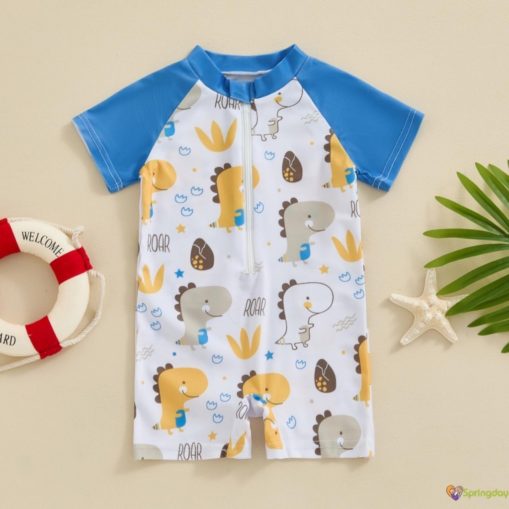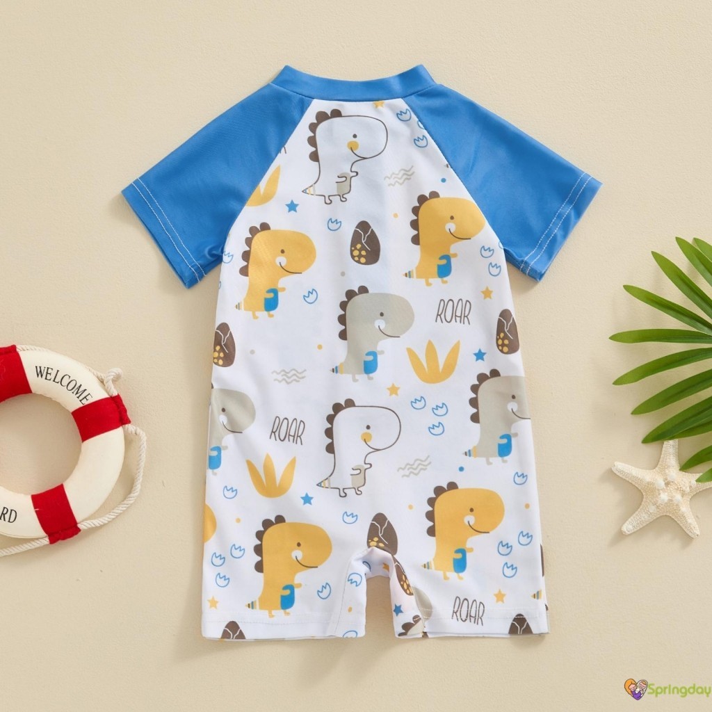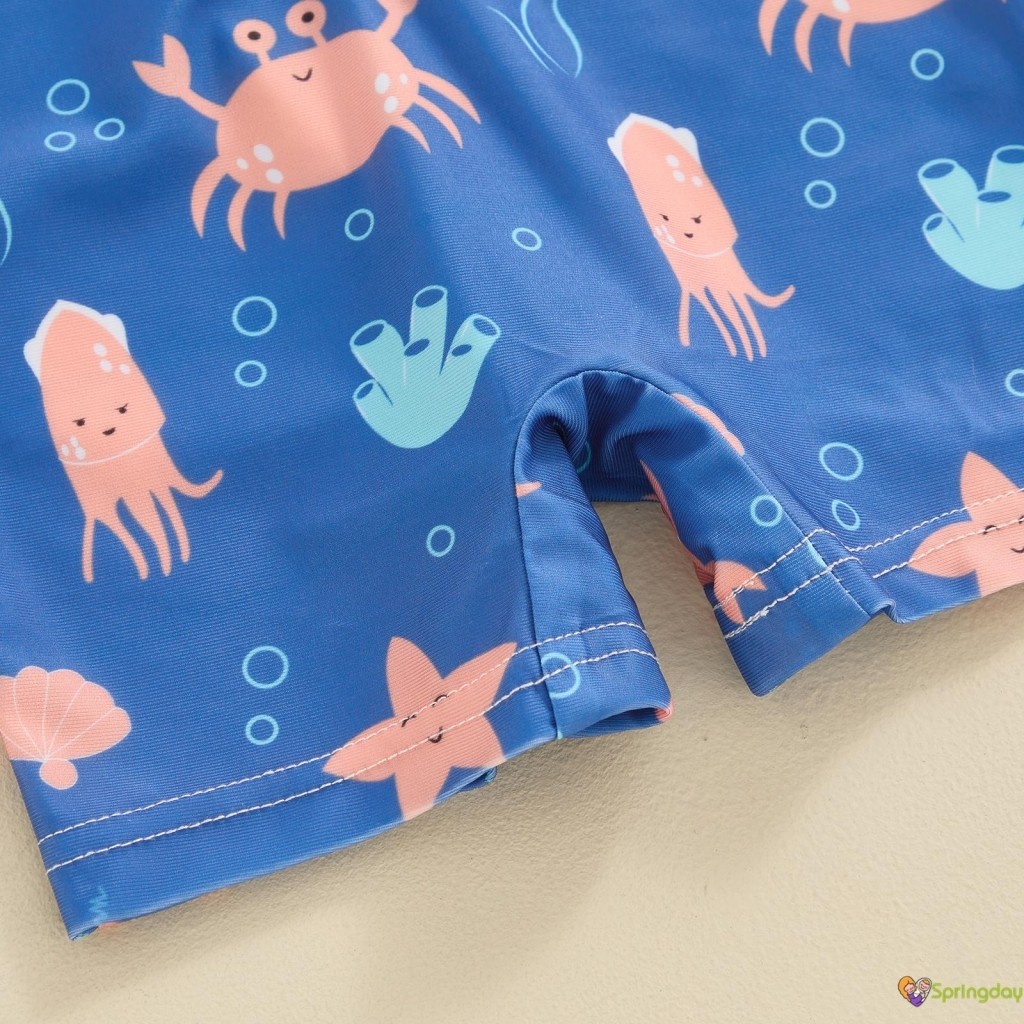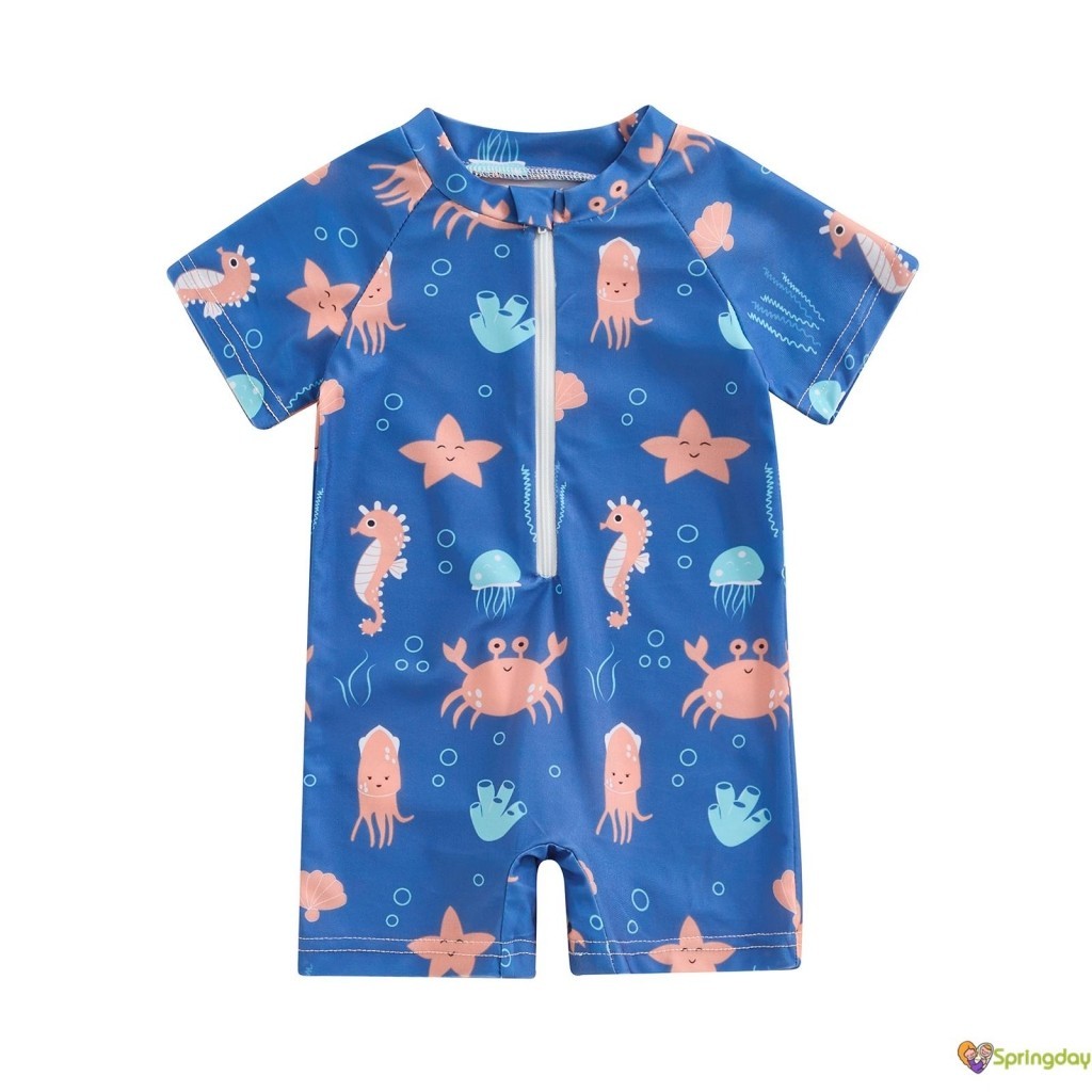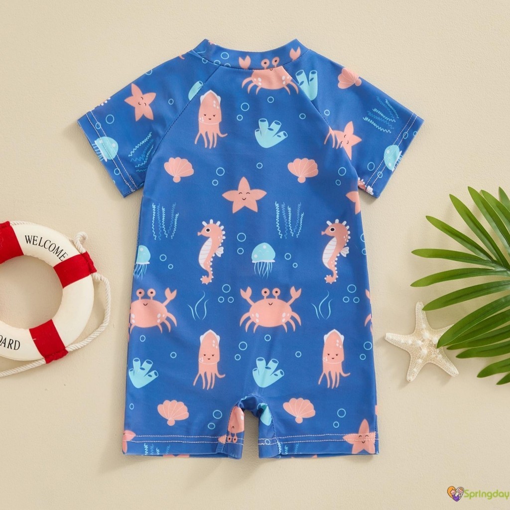 Infantil Bebê Meninos Roupa de Banho Desenho Animado Organismos Marinhos Imprimir Manga Curta Zíper Maiôs,0-3 Anos