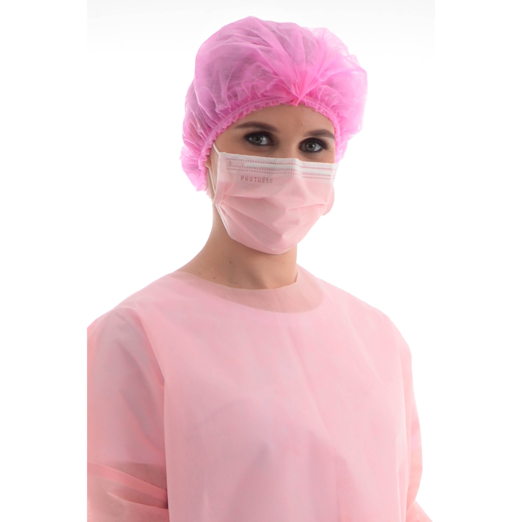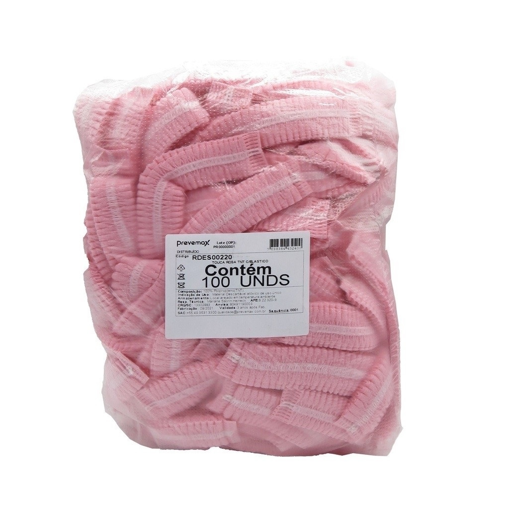 Touca Descartável Rosa TNT Elástico Duplo 100 Unidades